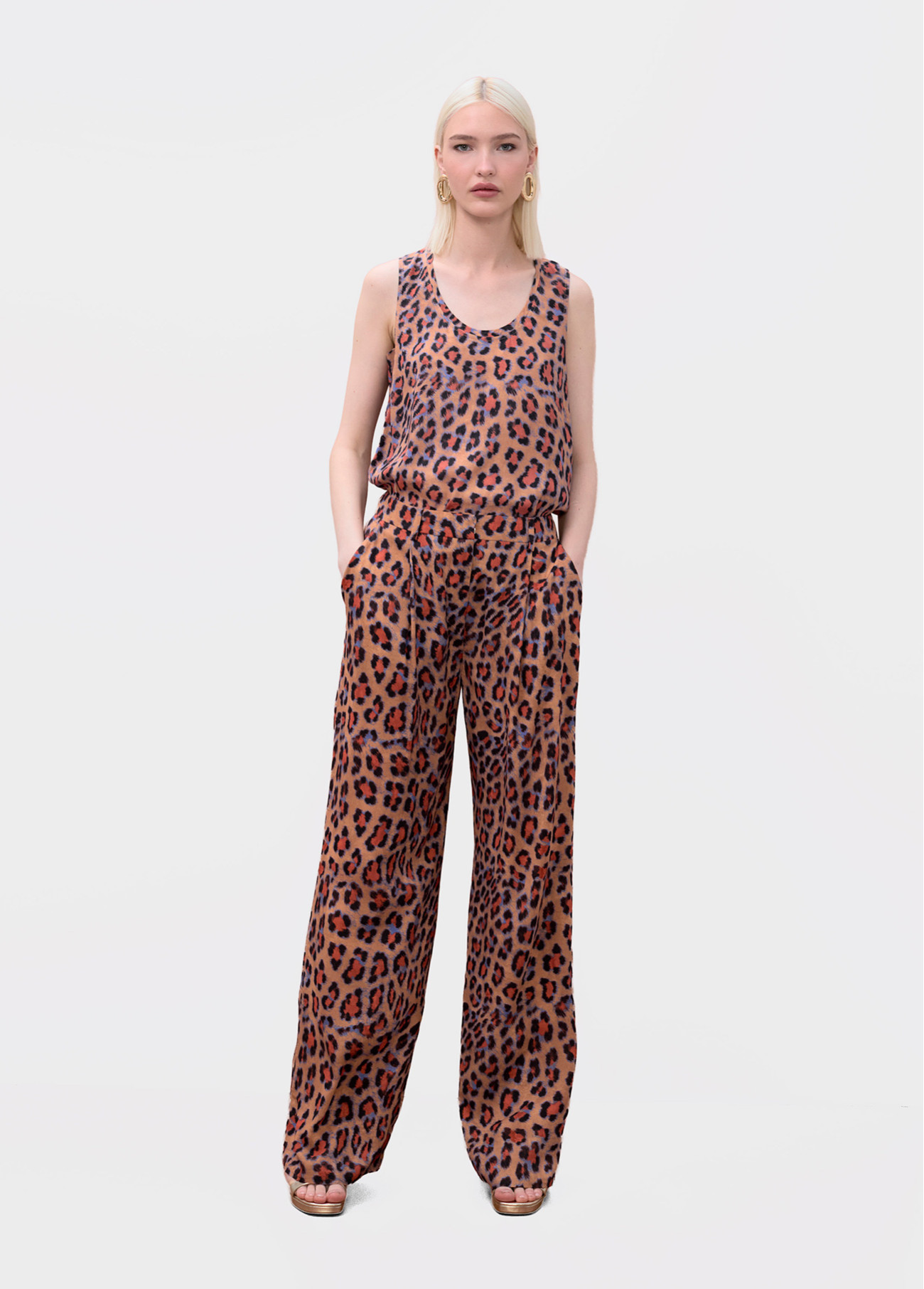Top de cuello redondo con un vibrante estampado animal. Confeccionado en tejido ligero ideal para climas cálidos. Diseño recto que proporciona comodidad y estilo. Perfecto para combinar con tus looks más atrevidos.