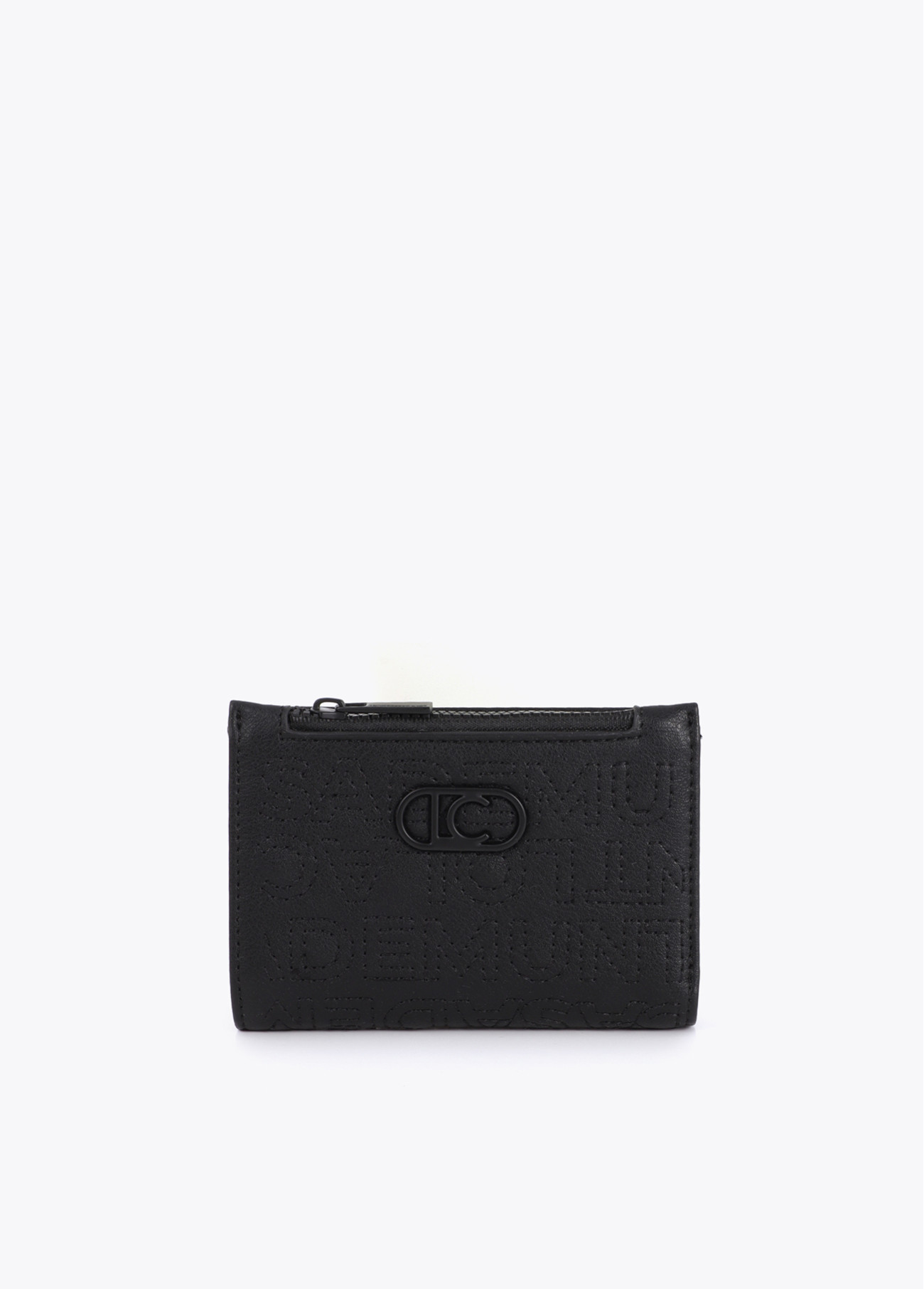 Monedero compacto con detalles de pespuntes y logo grabado. Distribución interna con múltiples compartimentos para tarjetas y bolsillo con cremallera. Ideal para llevar en cualquier bolso.
