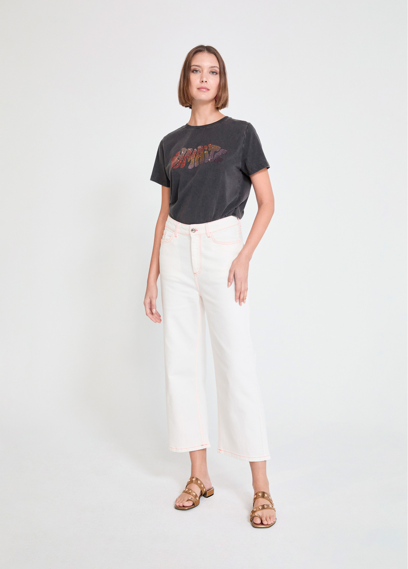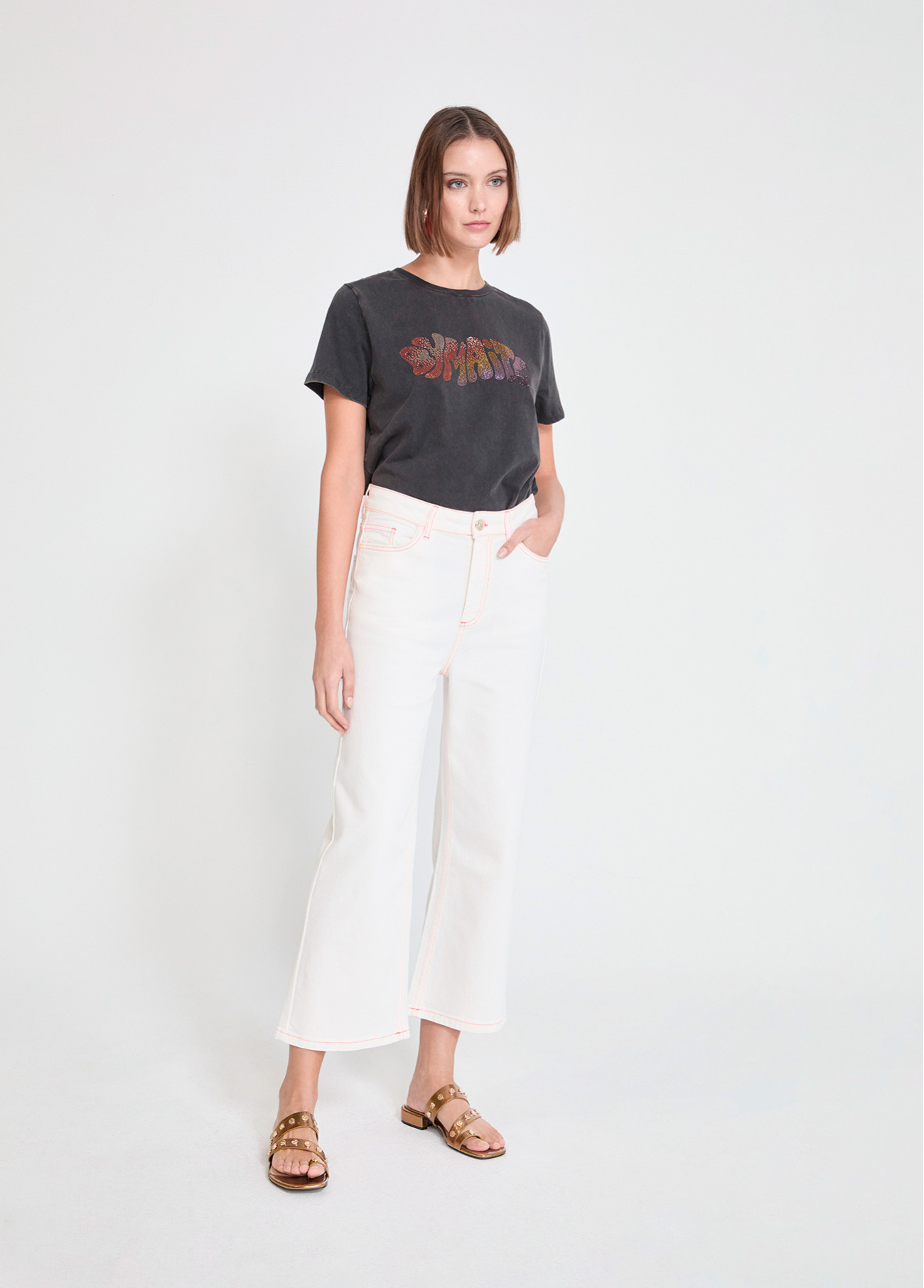 Culotte de sarga en color marfil con costuras en contraste que elevan el diseño. Cintura alta y ajuste fluido para un confort óptimo. Ideal para looks casuales y versátiles gracias a su estilo moderno y atemporal.