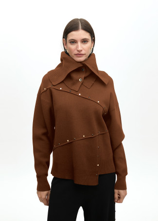 Pantalón recto confeccionado en tejido de punto suave. Presenta tachas decorativas en los laterales para un toque moderno. Cintura elástica para mayor comodidad. Perfecto para combinar con cualquier look, desde informal hasta formal.
