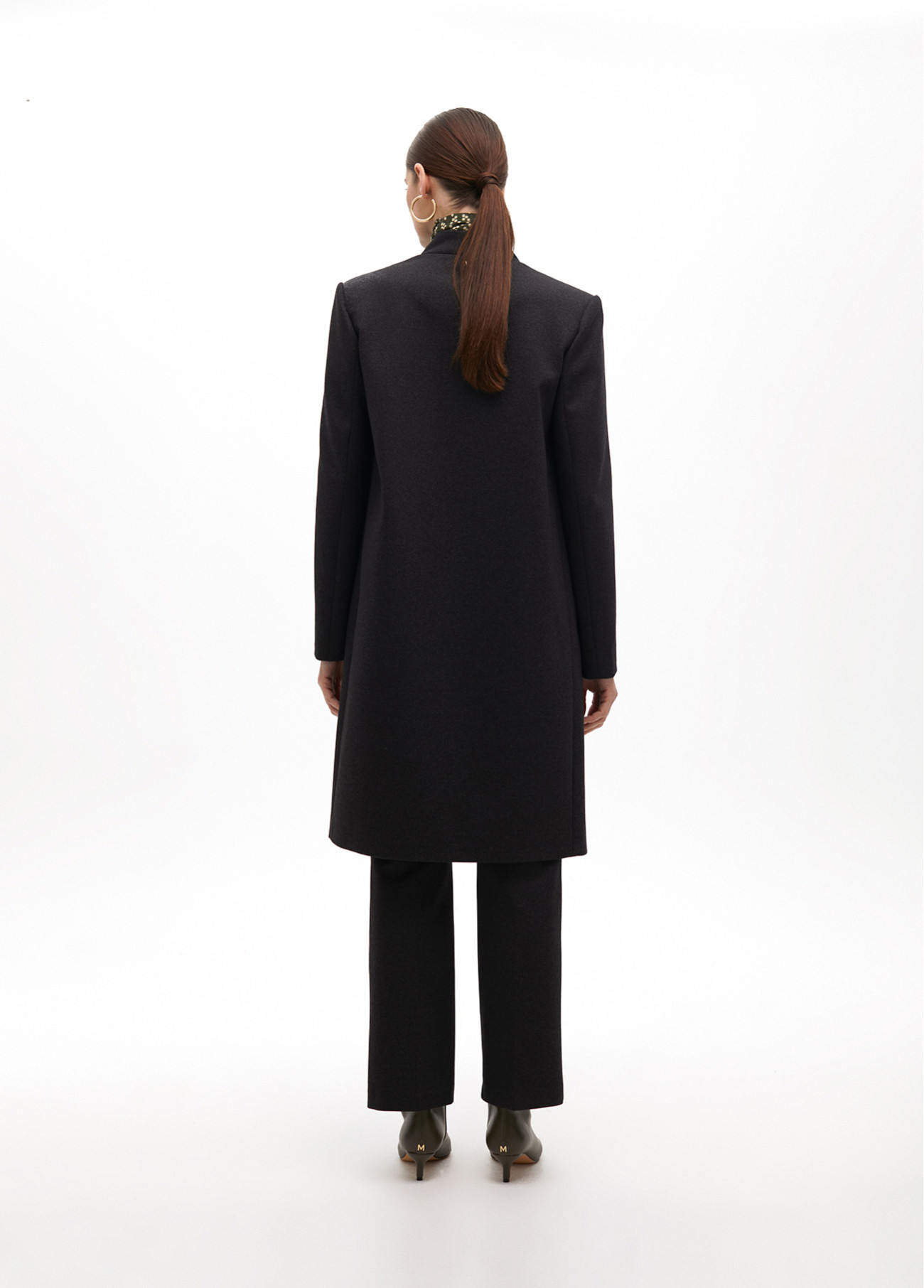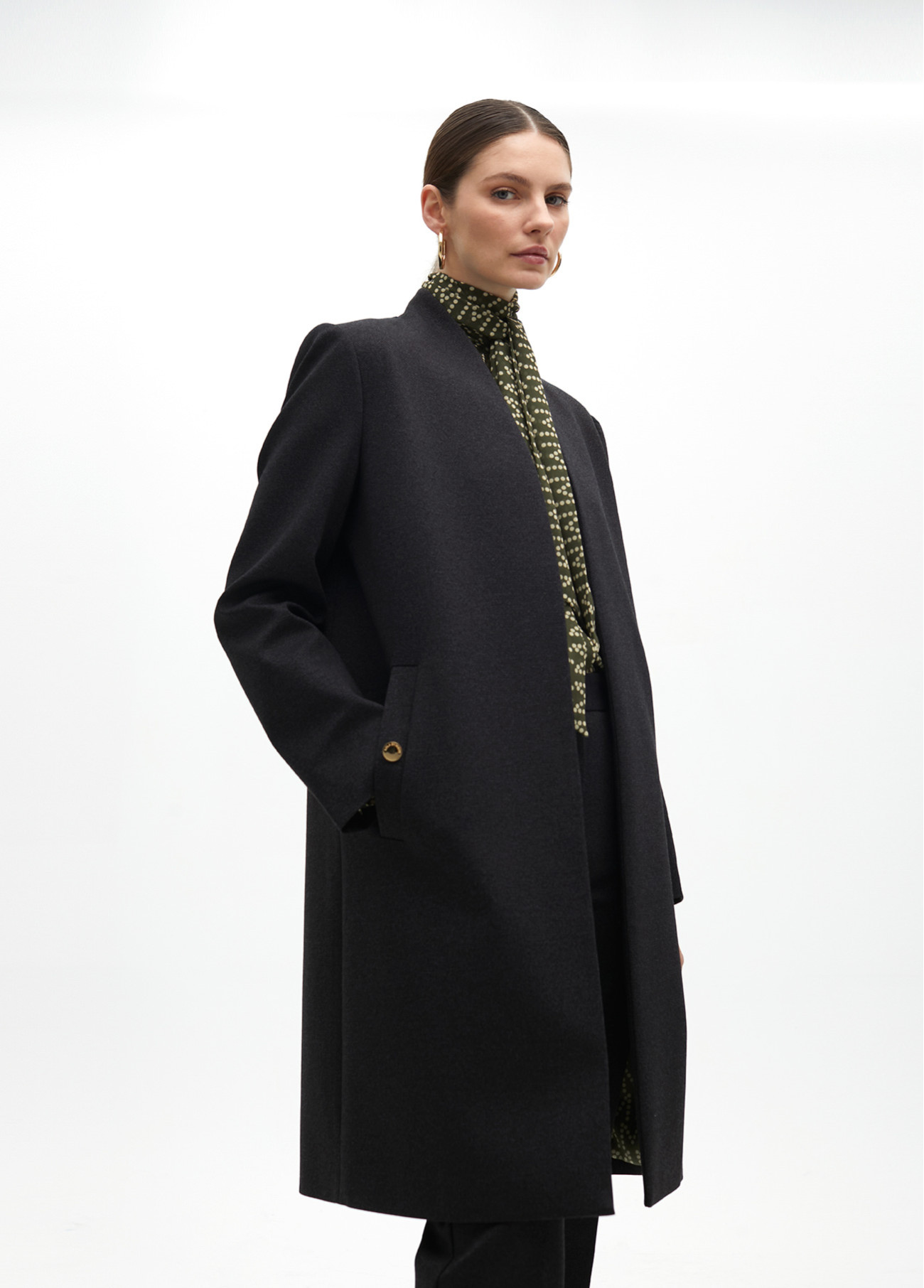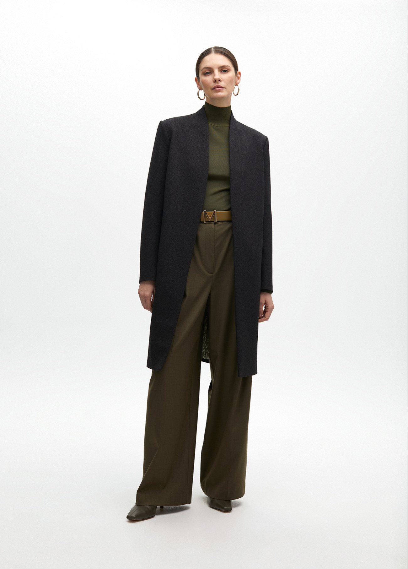 Elegante levita de punto con un diseño recto y sofisticado. Forro interior con logotipo, detalles minimalistas y bolsillos frontales. Ideal para complementar cualquier look con un toque moderno.