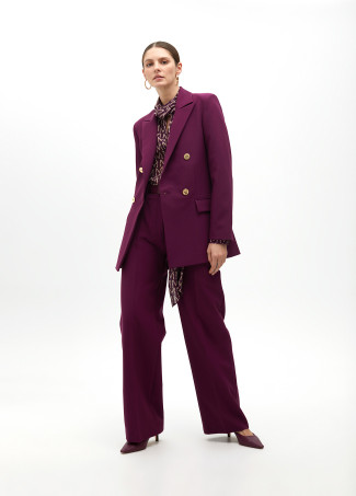 Americana cruzada con doble botonadura en tejido que ofrece máximo comfort. Forro logotipado y botones dorados. Corte ajustado con solapa amplia y bolsillos con solapa.