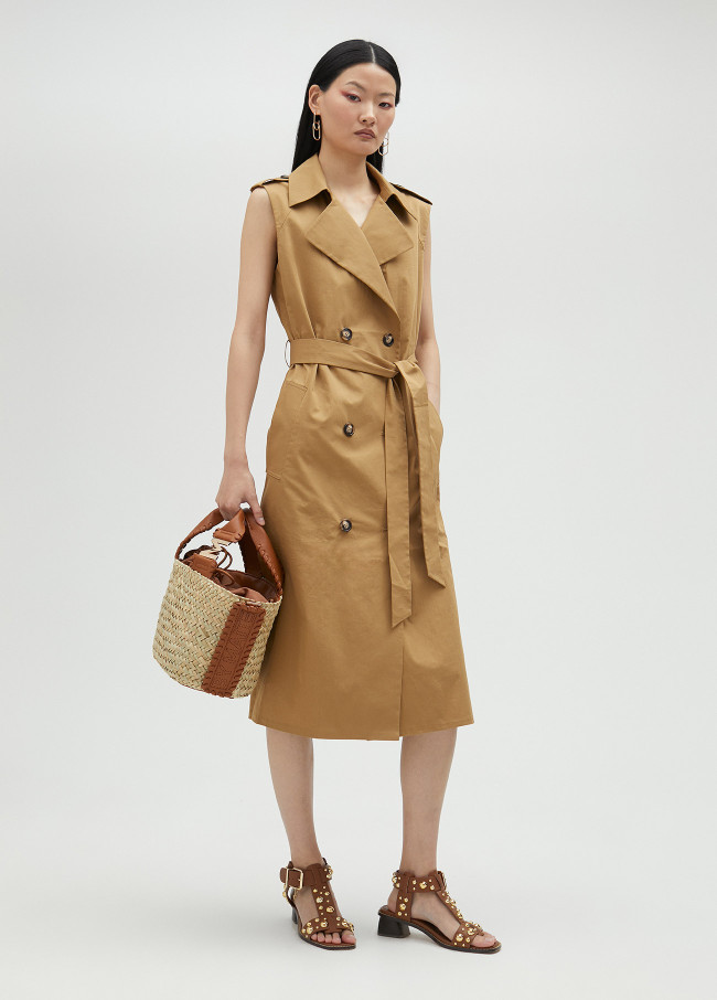Vestido cruzado sin mangas estilo chaleco con diseño convertible. Incluye bolsillos laterales y cinta para ajustar como cinturón. Ideal para un look versátil y moderno.