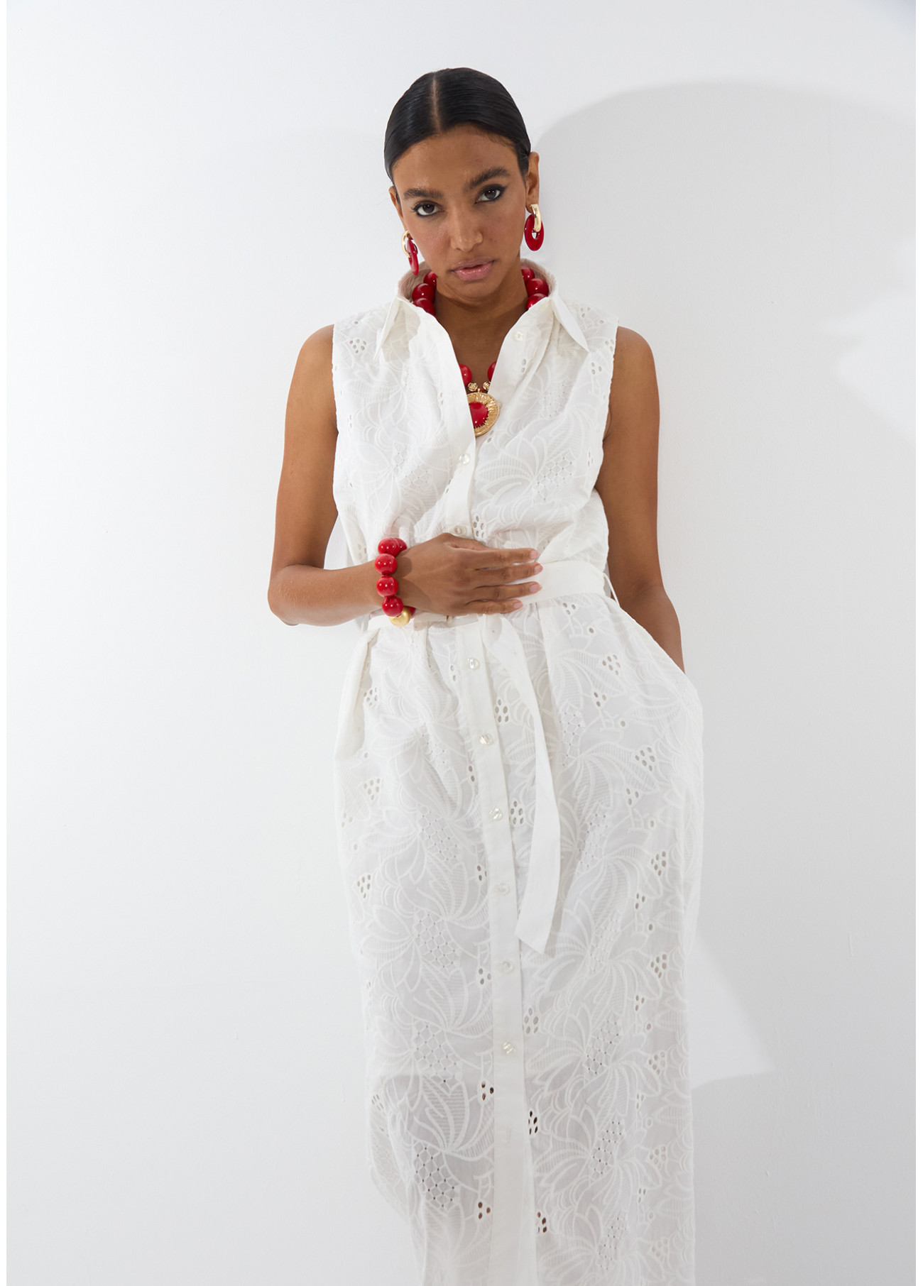 Vestido midi camisero con cinturón