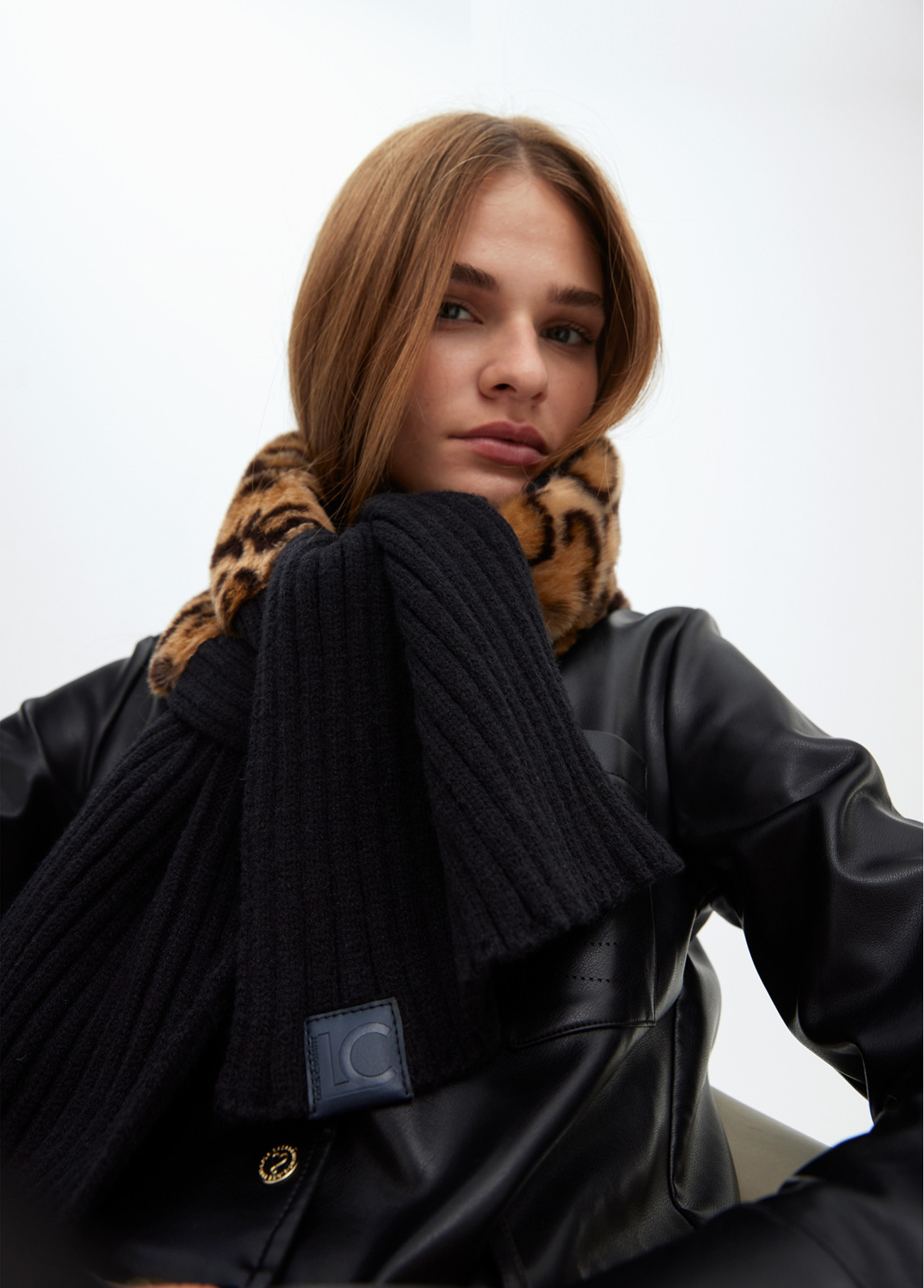 Écharpe en tricot avec mélange de fausse fourrure et design imprimé animal. Douce et chaude, parfaite pour accessoiriser n'importe quelle tenue d'hiver. Logo distinctif de Lola Casademunt.