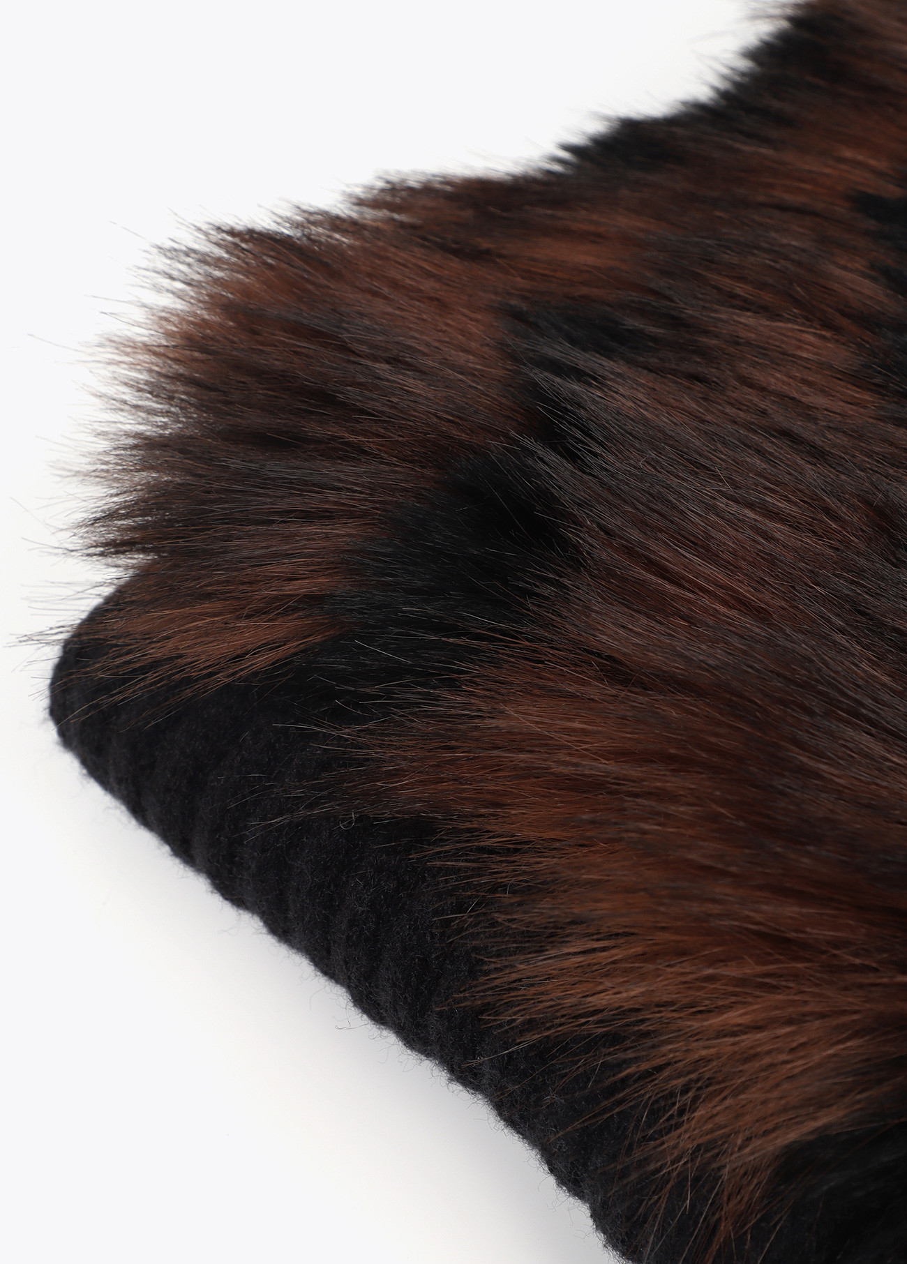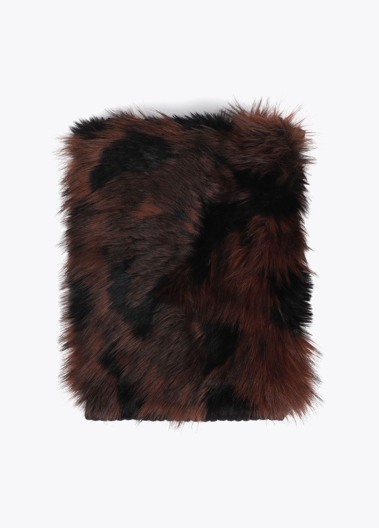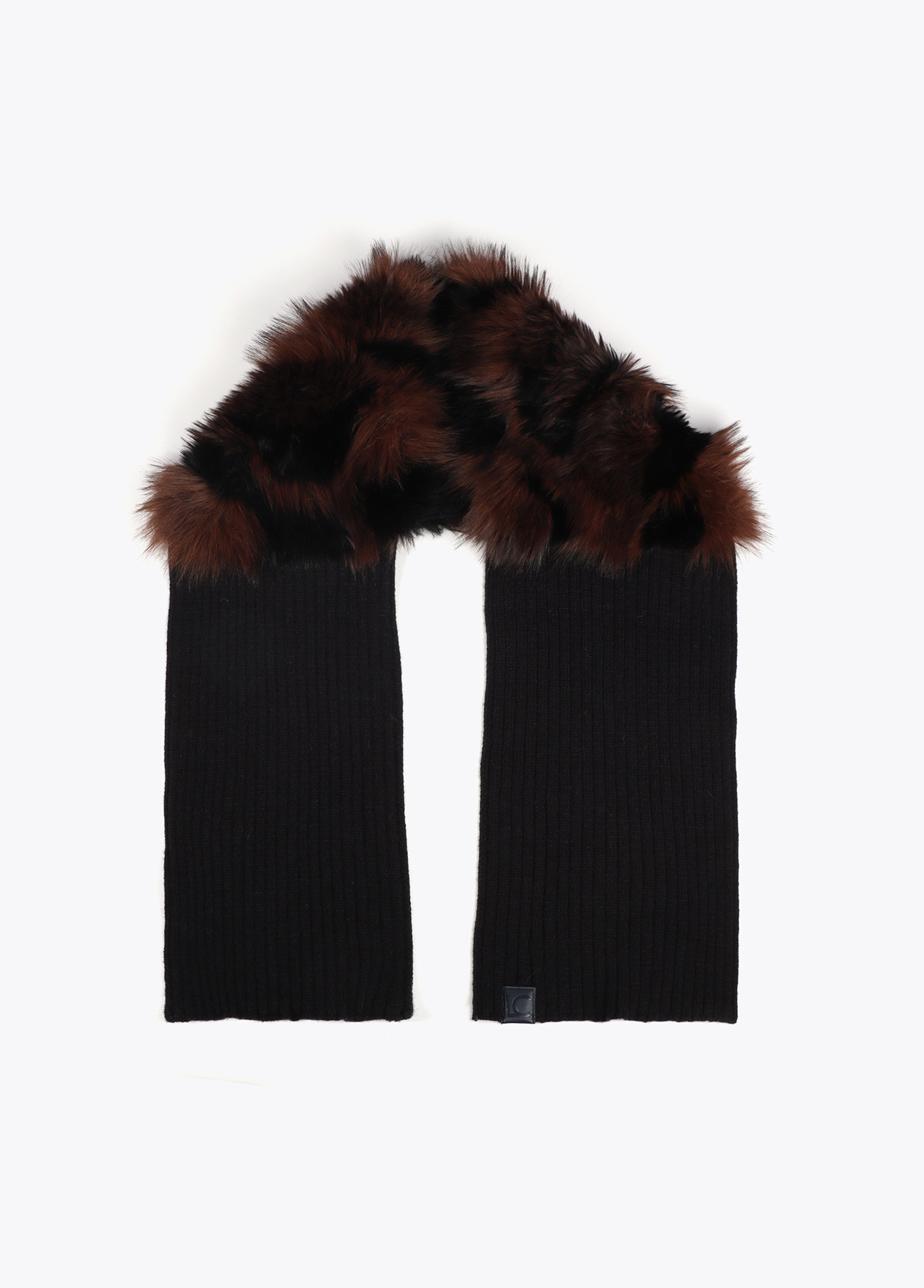 Écharpe élégante combinant maille chaude et tissu doux effet fausse fourrure. Design sophistiqué en deux tons, parfait pour ajouter du style à vos tenues d'hiver. Inclut un détail de logo à la fin.