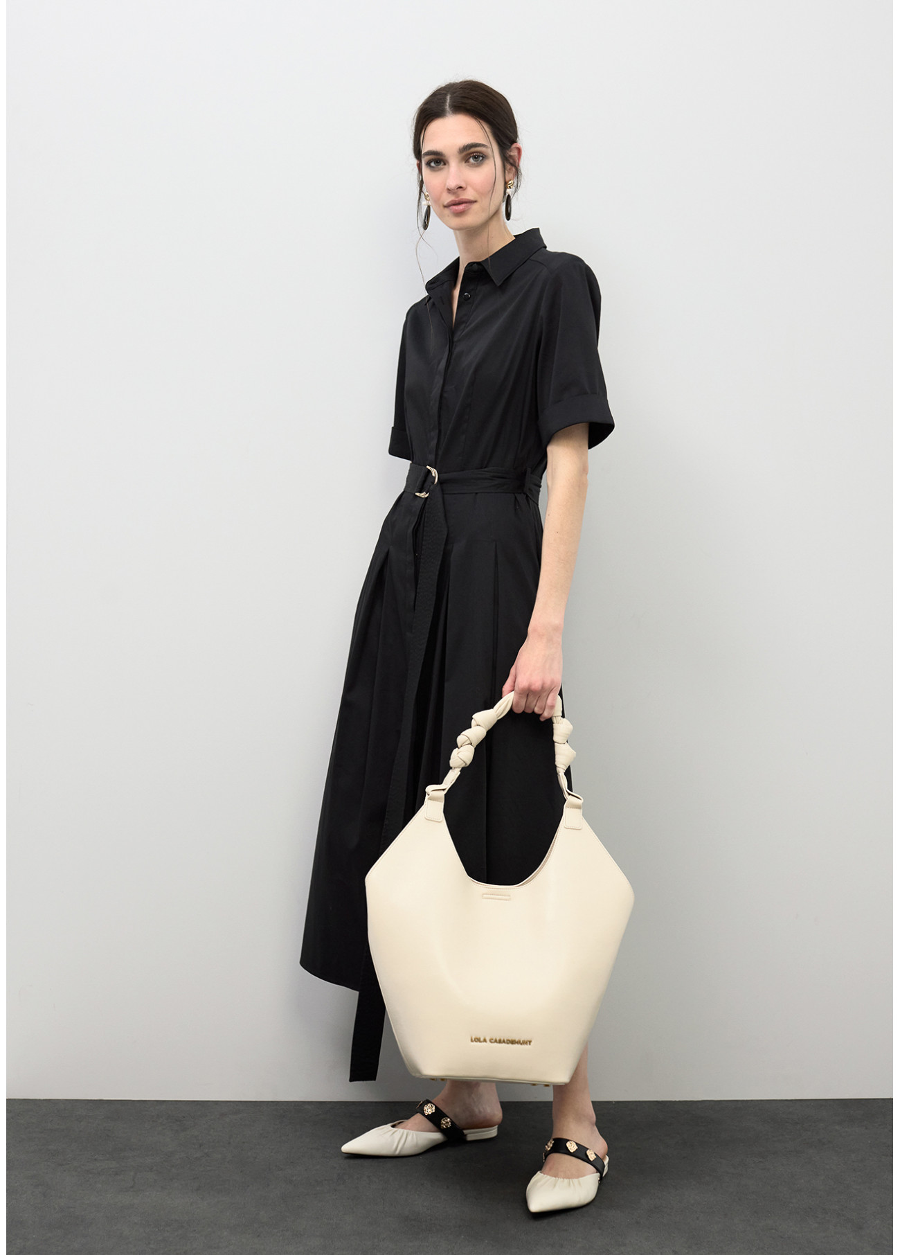 Cabas spacieux en crème élégant avec une poignée nouée unique pour le confort. Fabriqué en matériau durable avec un intérieur spacieux, idéal pour un usage quotidien. Logo Lola Casademunt sur le devant.