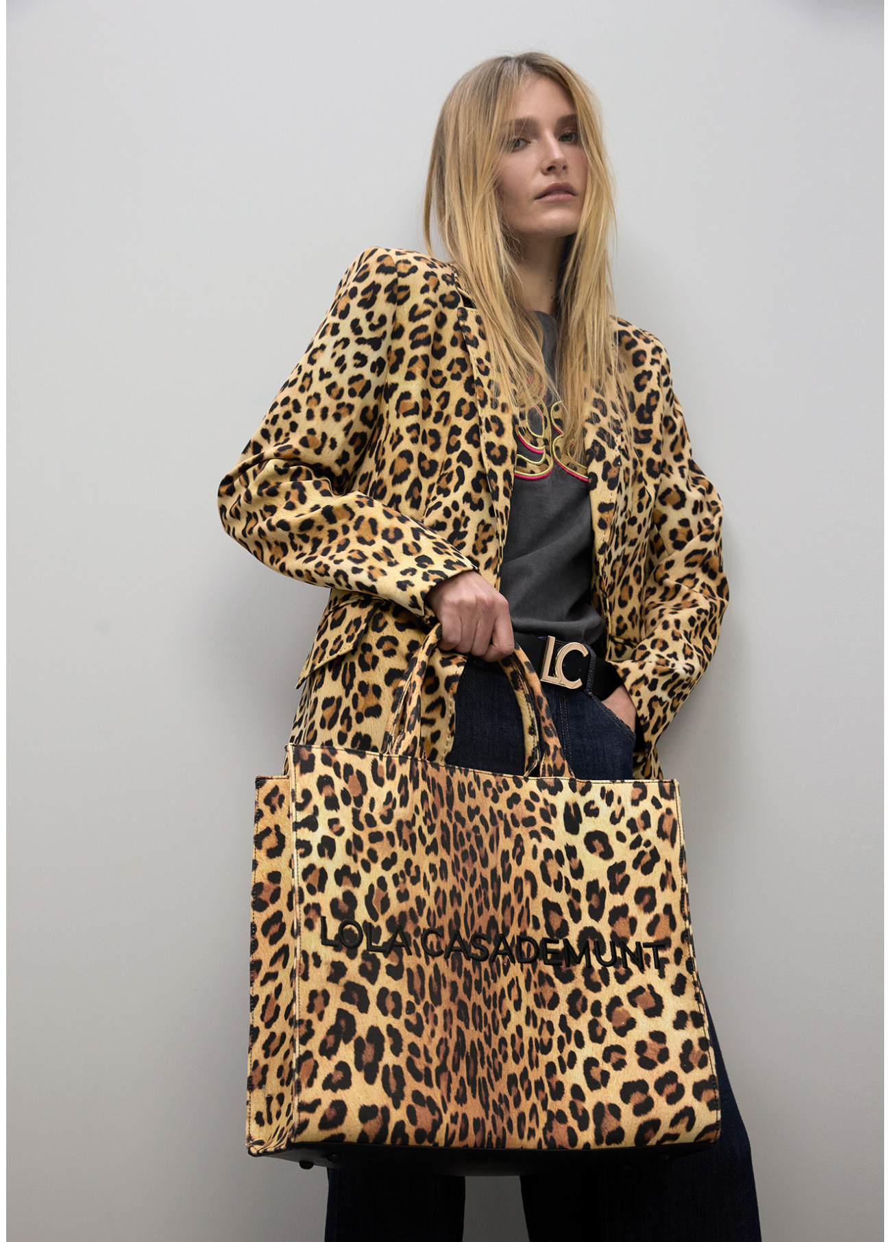 Shopper spacieux avec imprimé léopard en tissu résistant. Parfait pour un style urbain audacieux. Comprend des poignées doubles et des détails de logo brodé.