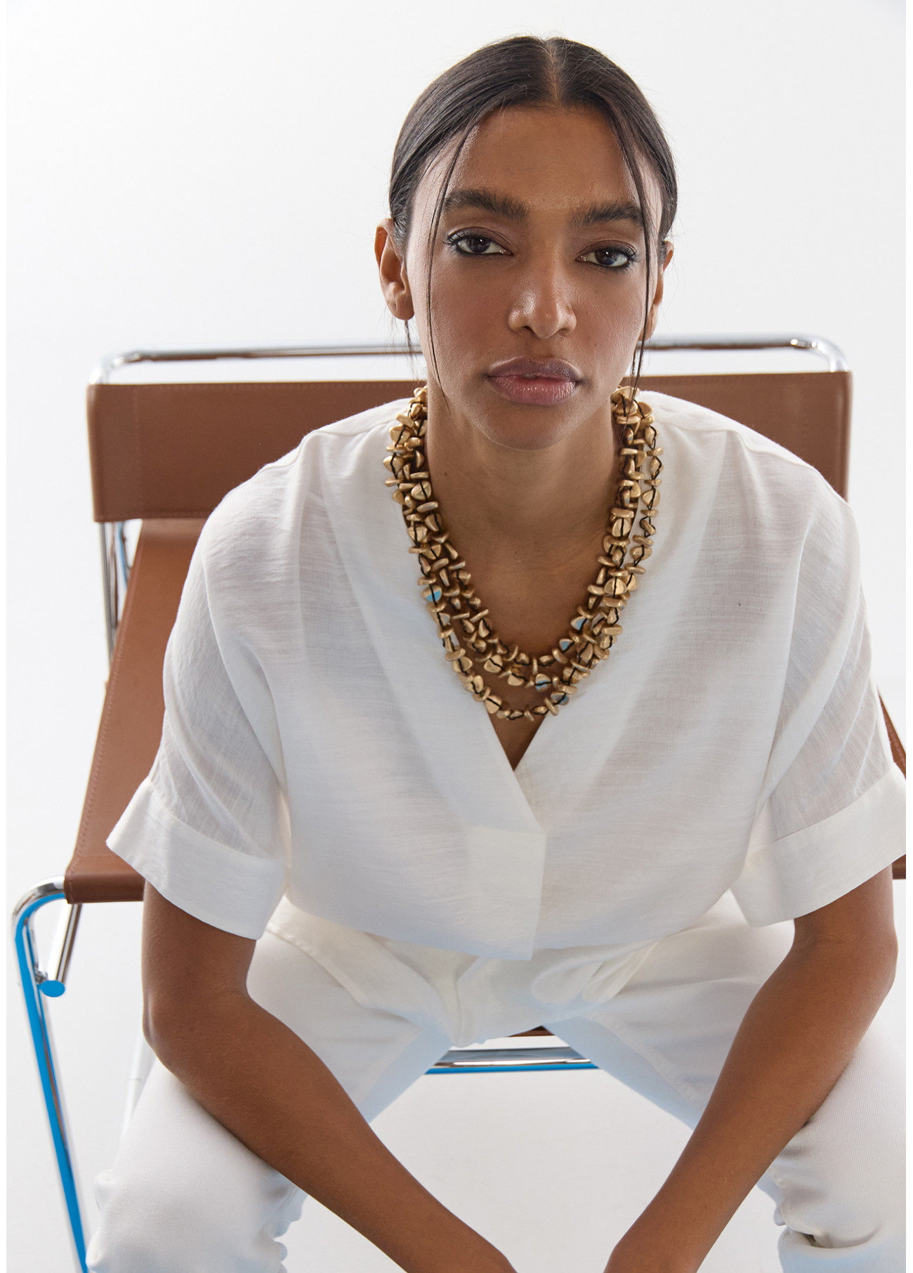 Collier en couches avec des perles dorées pour une touche chic et contemporaine. Son design polyvalent rehausse toute tenue, offrant sophistication avec une fermeture ajustable pour le confort.
