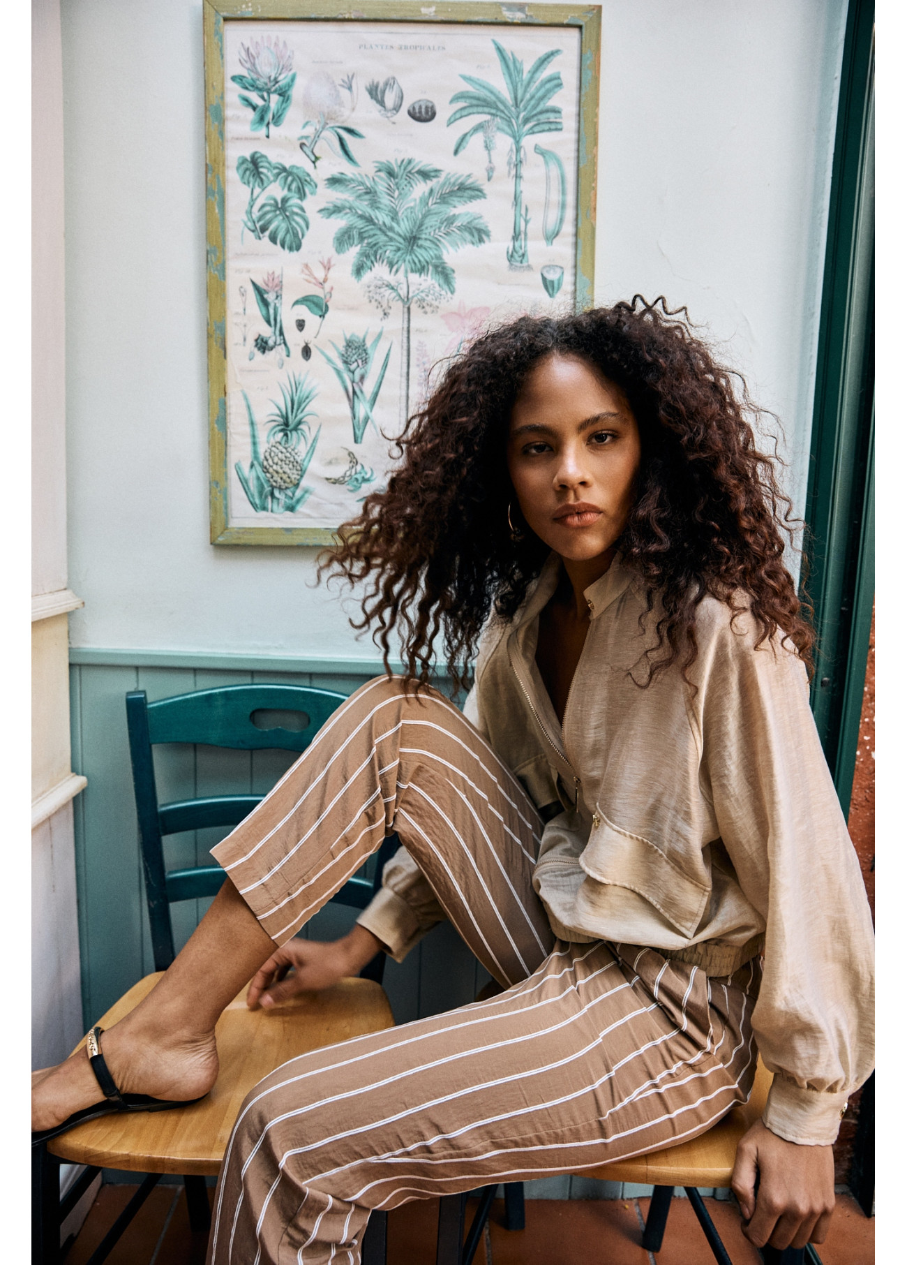 Joggers légers avec imprimé rayures verticales. Taille élastique pour le confort et poches latérales fonctionnelles. Parfaits pour un look décontracté et élégant.