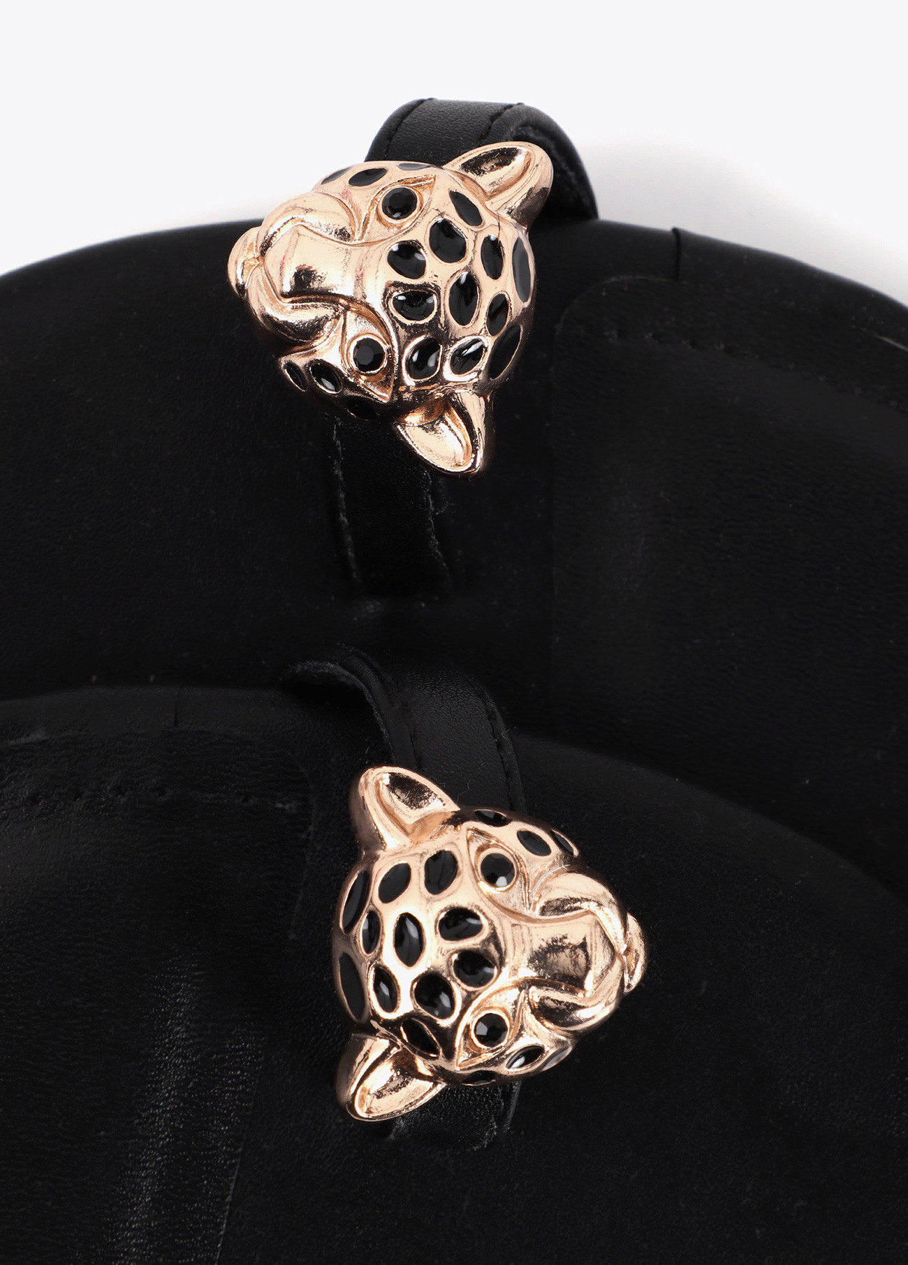 Sandale plate avec tête de léopard et clous
