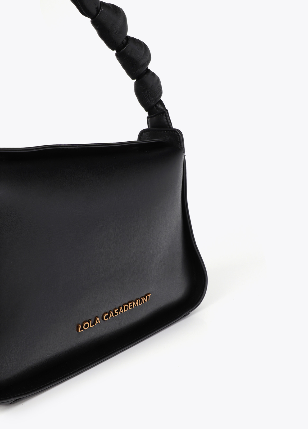 Mini bandoulière noire avec anse sophistiquée en nœuds. Fermeture à glissière et détail logo doré. Idéale pour un style élégant et pratique.