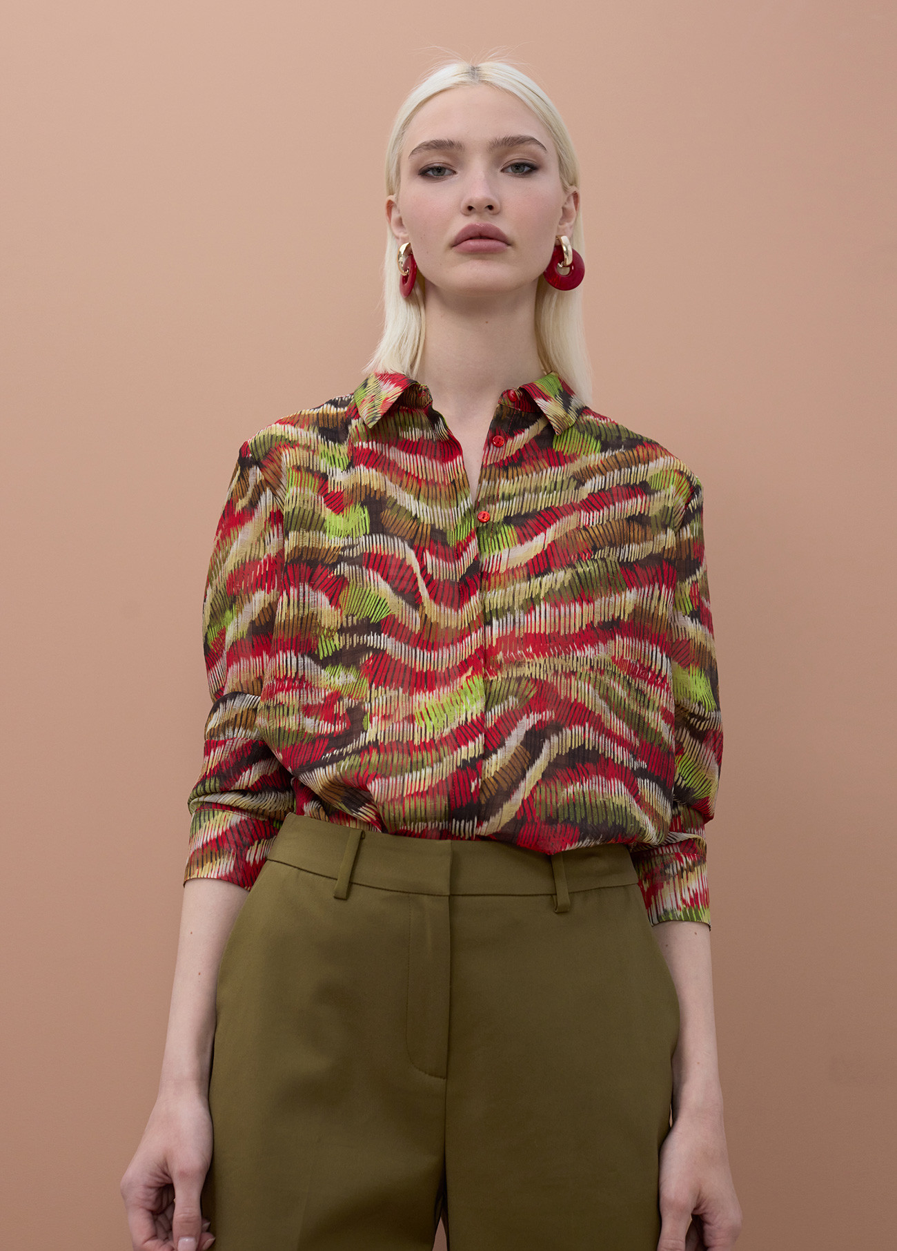 Pantalon à coupe droite avec une élégante bande décorative à la taille. Tissu de haute qualité dans un ton kaki, idéal pour diverses occasions. Poches latérales et fermeture éclair cachée.