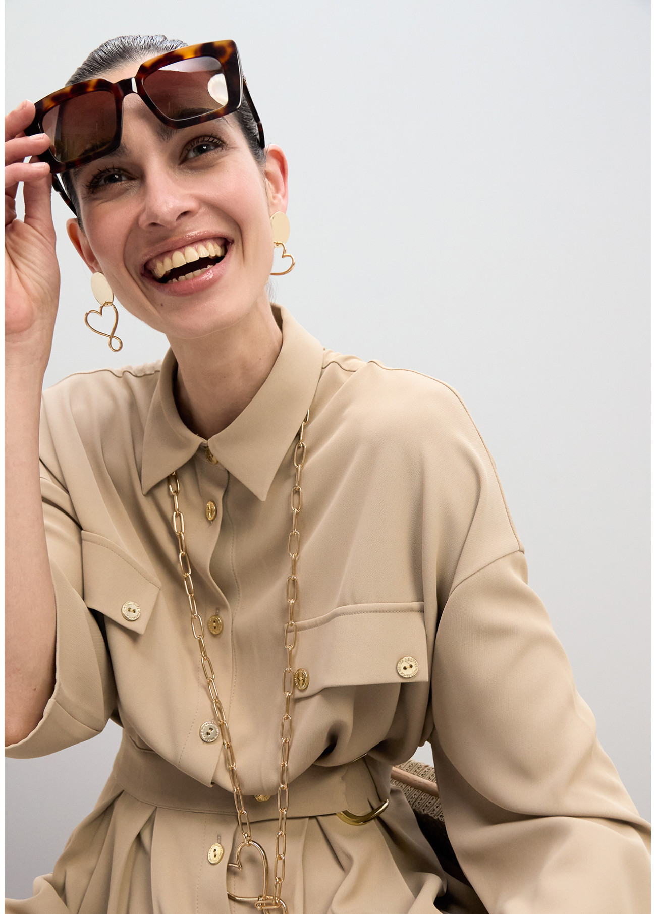 Boucles d'oreilles dorées élégantes avec un design de cœur et d'infini. Fabriquées en métal de haute qualité. Fermeture à poussette avec logo gravé au dos. Parfaites pour ajouter une touche sophistiquée à toute tenue.