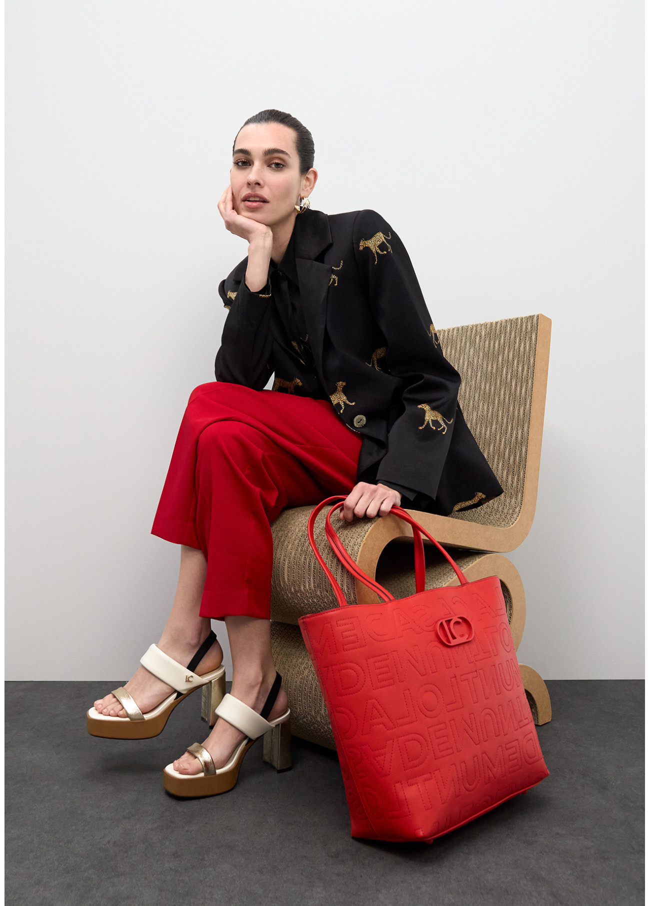 Sac shopper déstructuré en rouge vibrant avec coutures en monogramme. Les longues poignées offrent du confort, et la fermeture intérieure ajustable sécurise les essentiels. Parfait pour sublimer les tenues quotidiennes.
