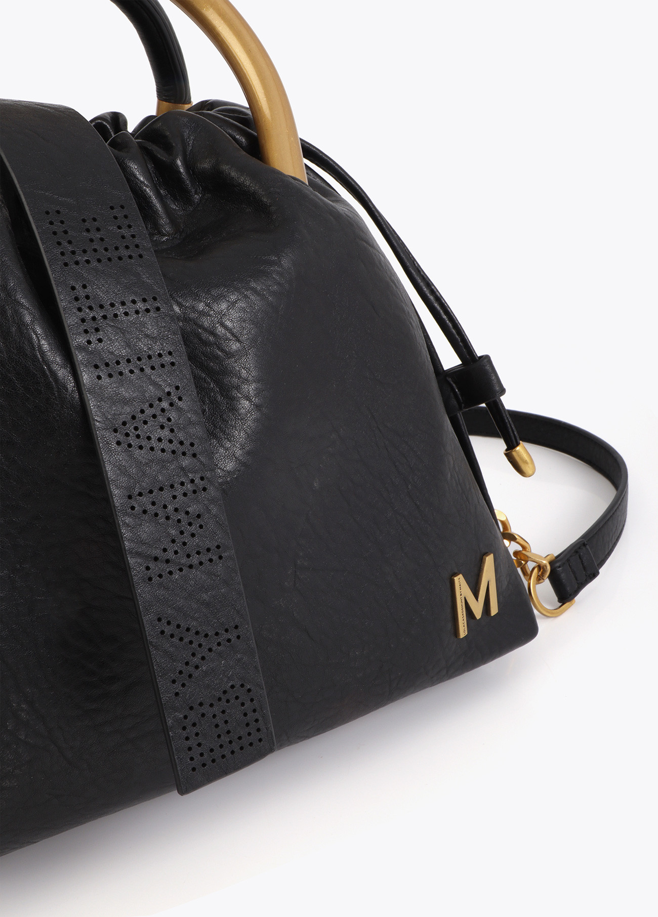 Sac élégant en effet cuir de haute qualité avec anse ronde en métal. Design polyvalent avec fermeture réglable et sangle chaîne amovible. Logo distinctif.