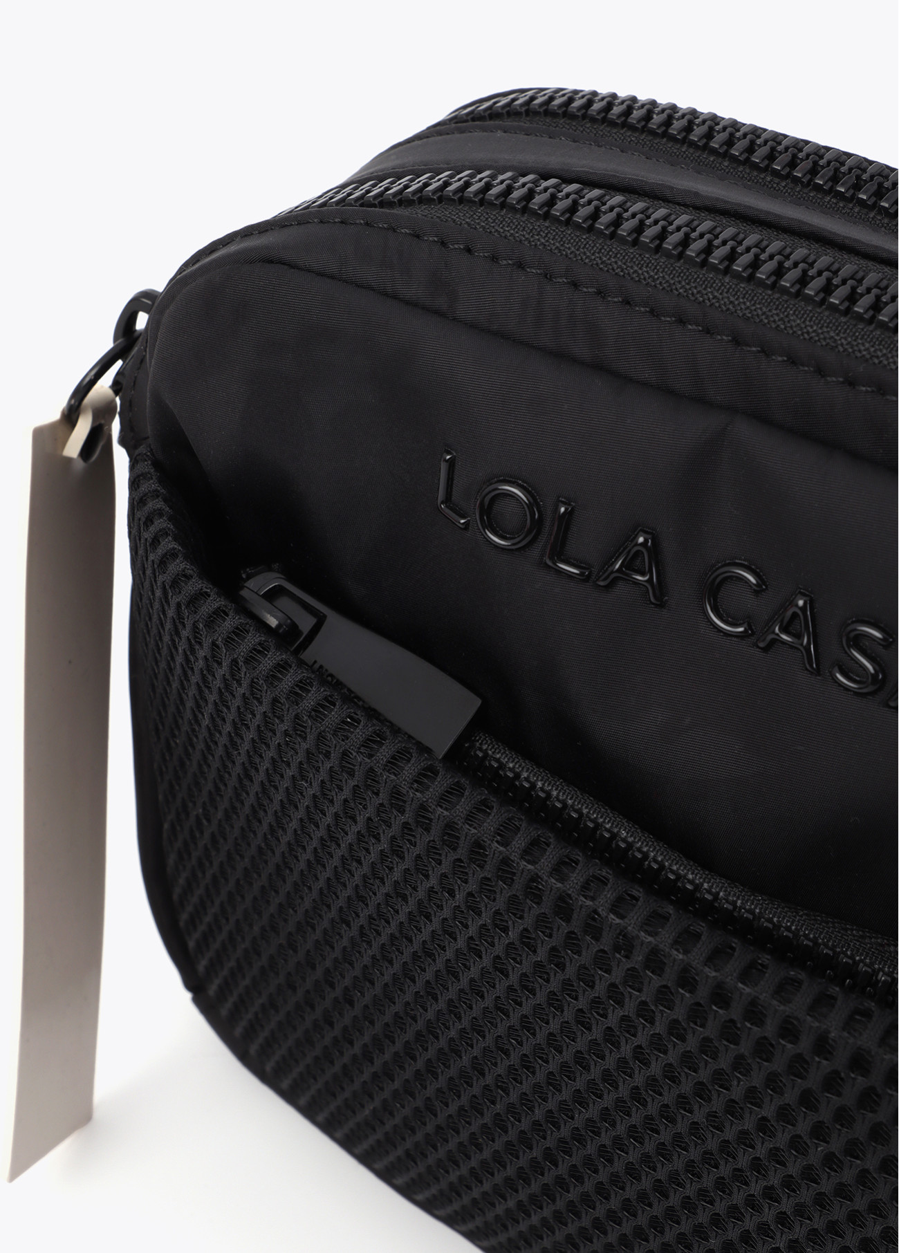 Bandoulière en nylon noir résistant, idéale pour un usage quotidien. Comprend un compartiment principal spacieux et une poche avant texturée. Sangle réglable avec logo pour plus de confort et de style.