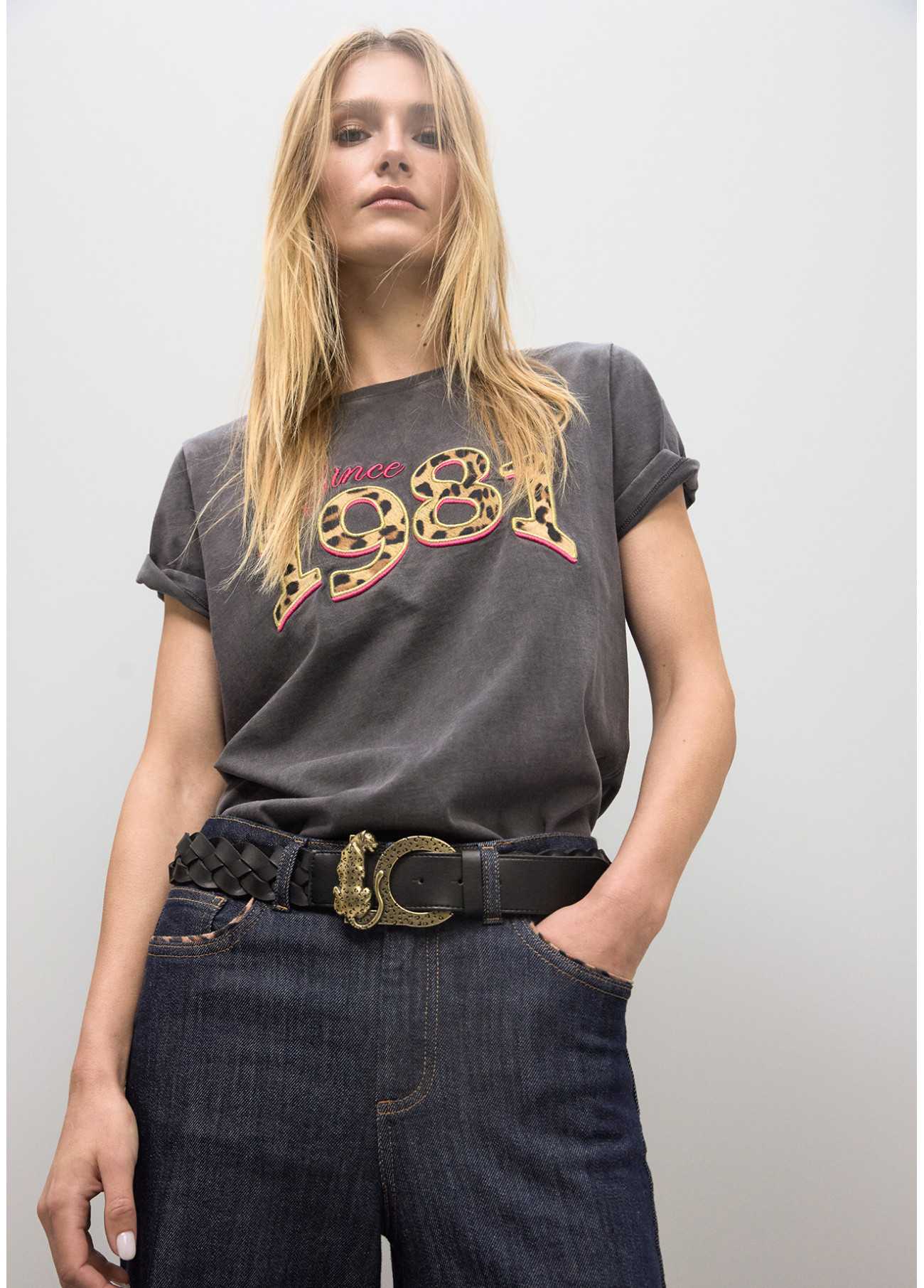 Ceinture réversible avec design tressé effet cuir et boucle sophistiquée à logo animal. Un accessoire polyvalent pour rehausser n'importe quelle tenue, adaptable grâce à sa réversibilité.