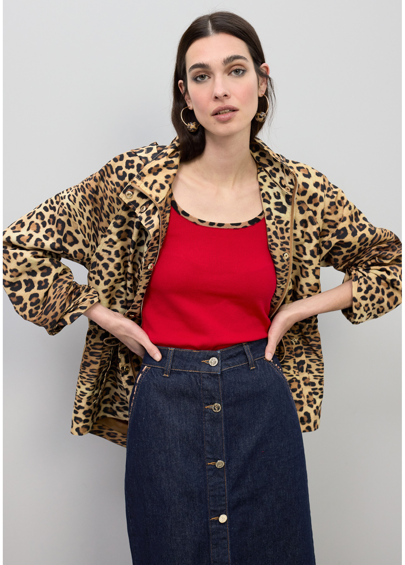Parka technique courte confectionnée en tissu de haute qualité avec imprimé animal. Capuche ajustable, fermeture à glissière frontale et poches latérales. Ajustement à la taille pour sublimer la silhouette. Idéale pour apporter une touche moderne et audacieuse à vos looks quotidiens.