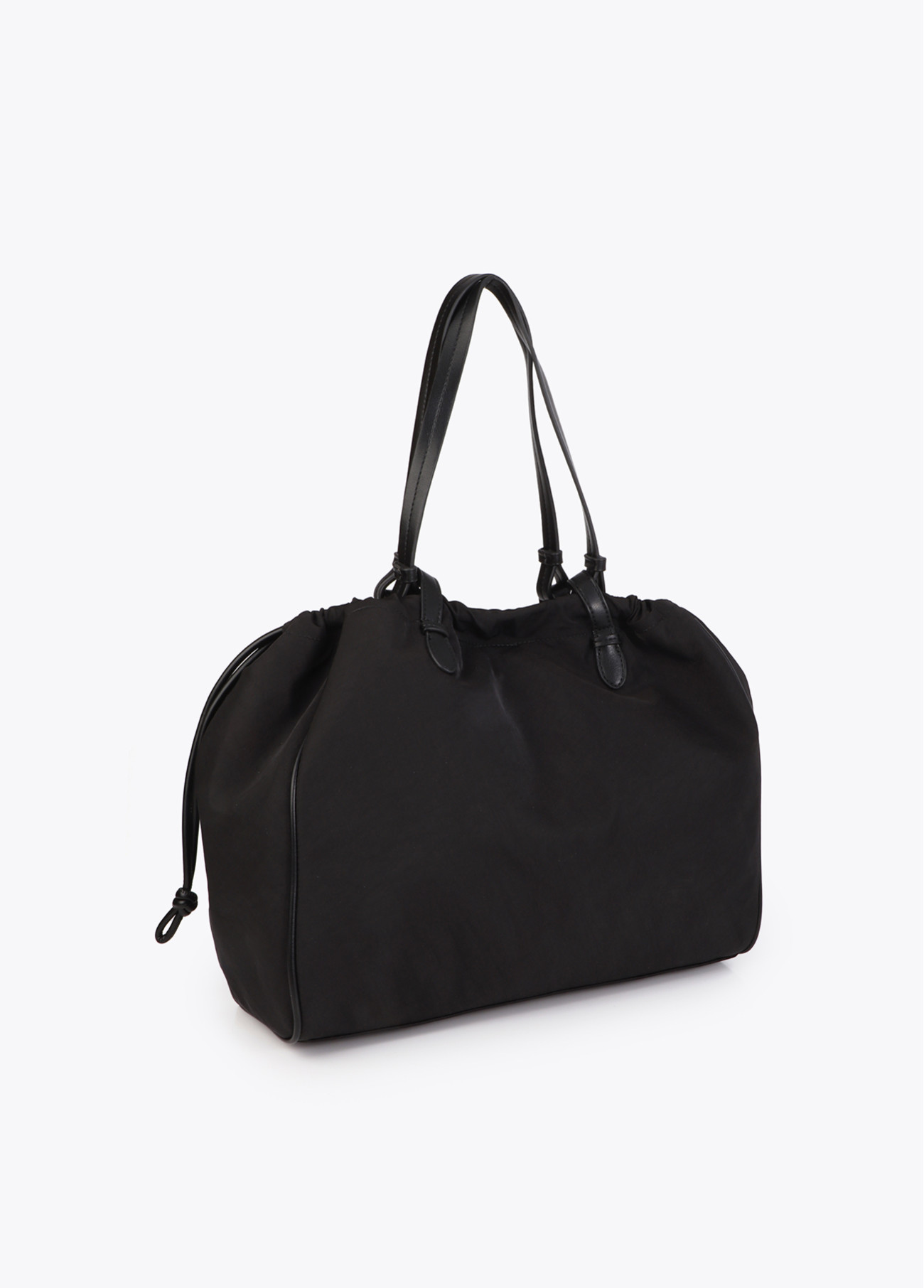 Shopper sophistiqué en nylon et PU. Grande capacité avec fermeture réglable par cordon. Longues anses confortables pour un transport facile. Idéal pour une utilisation quotidienne. Logo Lola Casademunt à l'avant. Comprend une petite pochette intérieure avec fermeture éclair.
