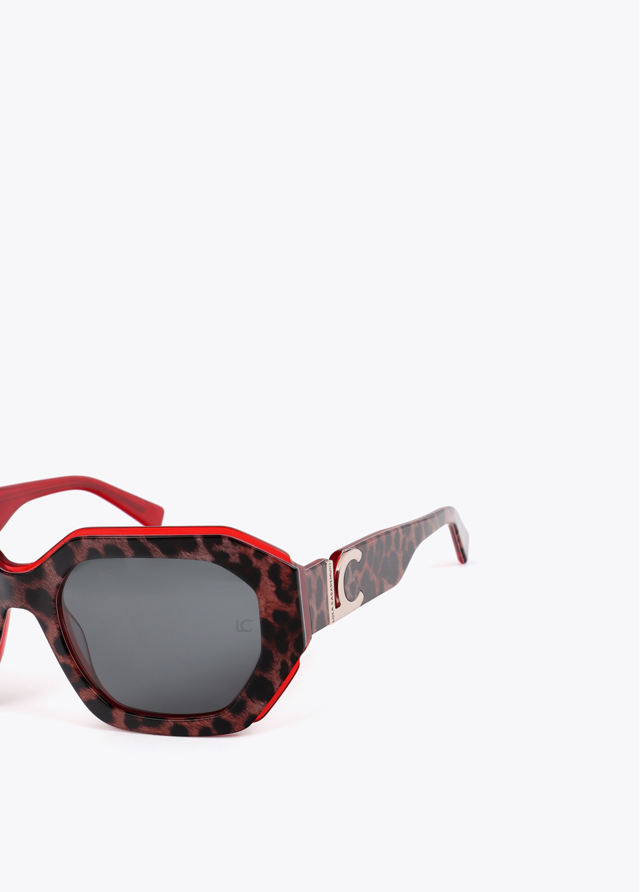 Lunettes de soleil rectangulaires avec un design bicolore élégant. Monture en acétate robuste dans des teintes contrastées. Verres gris avec protection UV. Complétez n'importe quelle tenue tout en protégeant vos yeux.