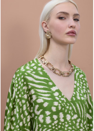 Blouse élégante avec imprimé moderne. Présente un décolleté en V et des manches bouffantes, offrant une touche sophistiquée. Tissu léger et doux, idéal pour sublimer toute tenue.