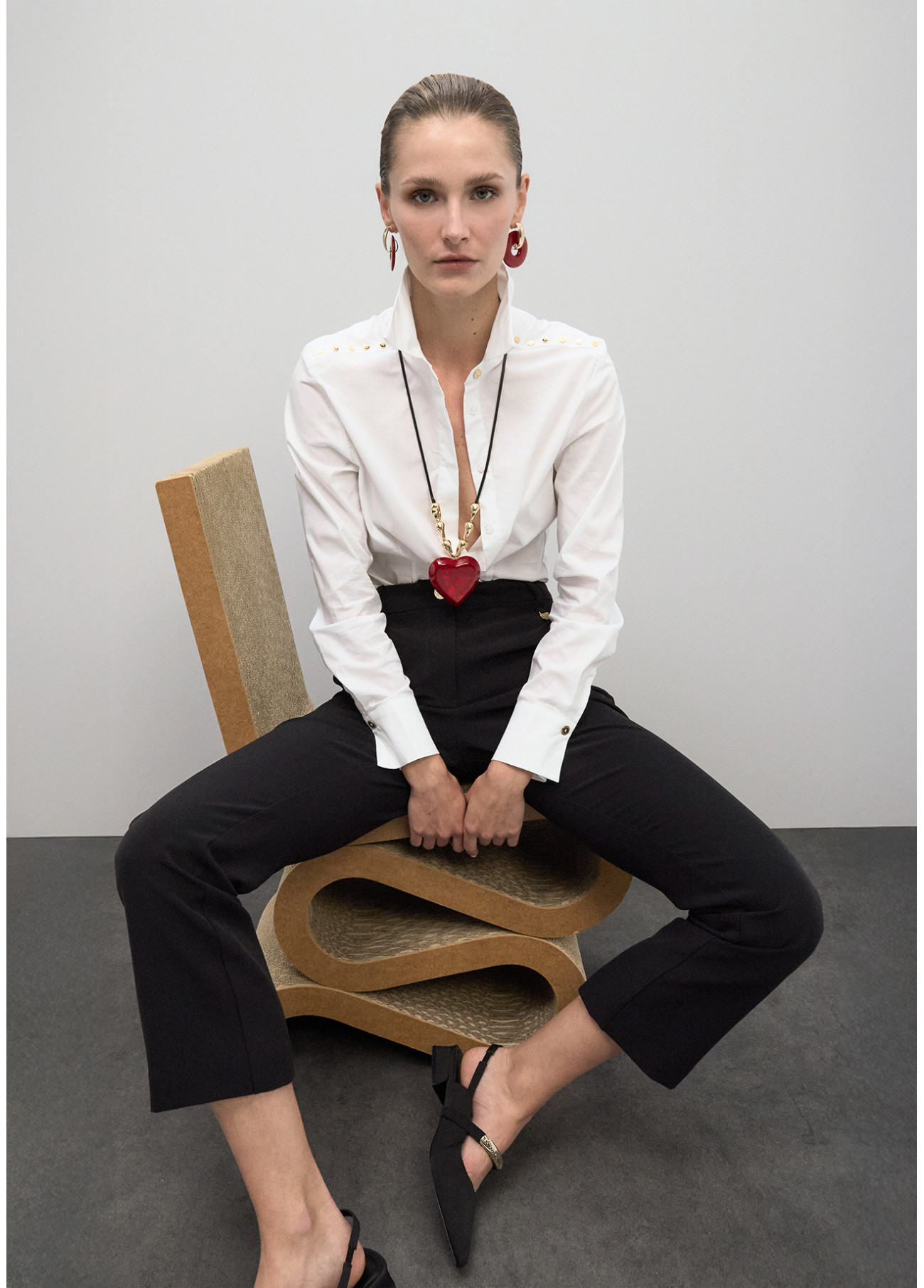 Collier long élégant avec un pendentif en forme de cœur rouge. Cordon noir avec détails dorés et fermeture ajustable. Parfait pour ajouter une touche romantique et sophistiquée à n'importe quelle tenue.