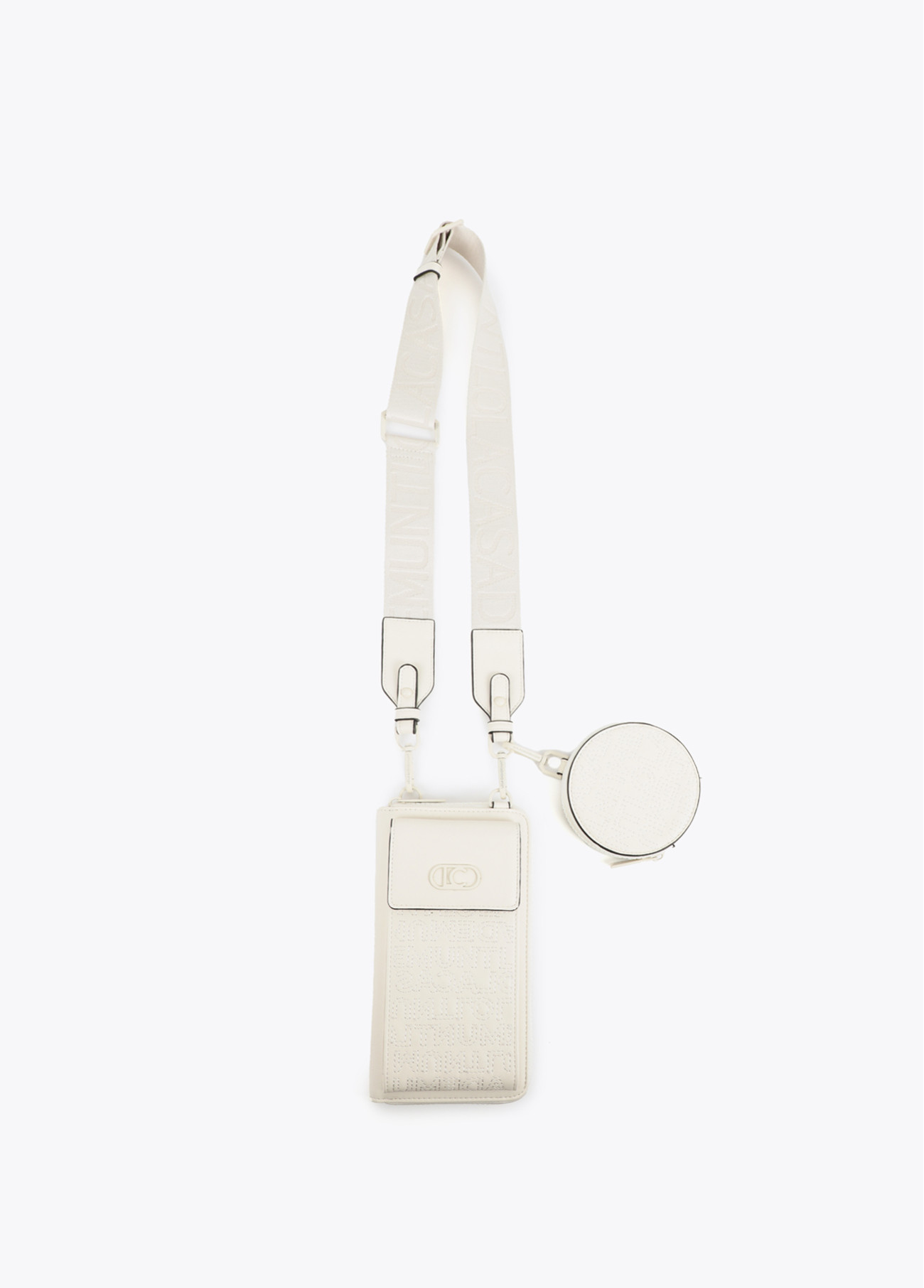 Pochette mobile élégante couleur ivoire avec design de logo cousu. Inclut une sangle ajustable pour plus de confort. Gardez votre appareil sécurisé et accessible à tout moment. Matériau durable.