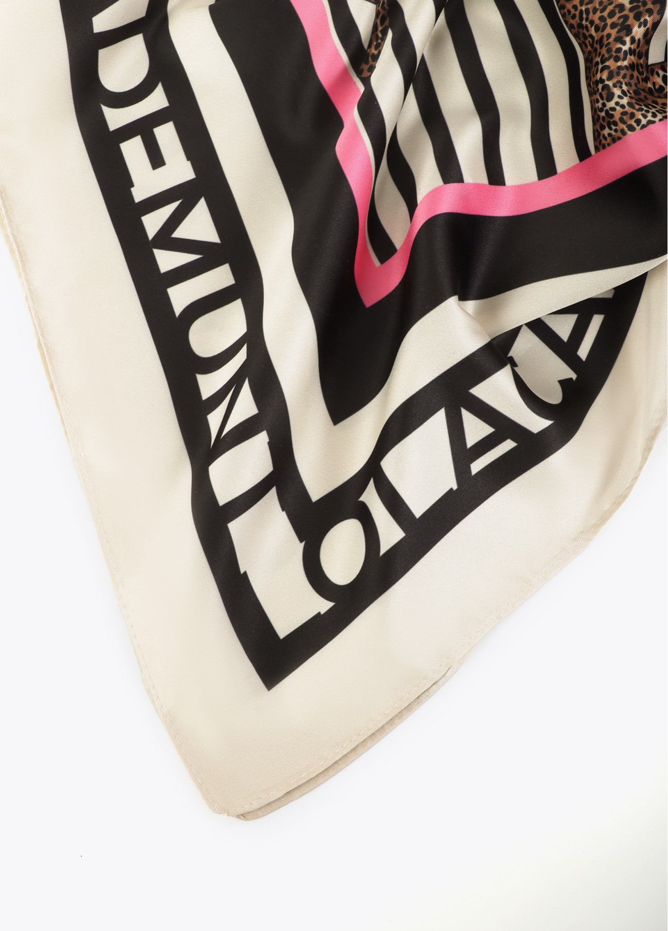 Ce foulard satiné présente un design unique de rayures et d'imprimé léopard. Doux au toucher, cet accessoire polyvalent est idéal pour ajouter une touche sauvage à n'importe quelle tenue. Fabriqué en matériau de haute qualité assurant une brillance élégante. Dimensions parfaites pour diverses options de style.