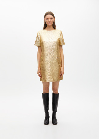 Sac au design sophistiqué en effet cuir. Doté d'une poignée tressée et de détails métalliques dorés. Comprend une bandoulière réglable et une fermeture éclair sécurisée.
