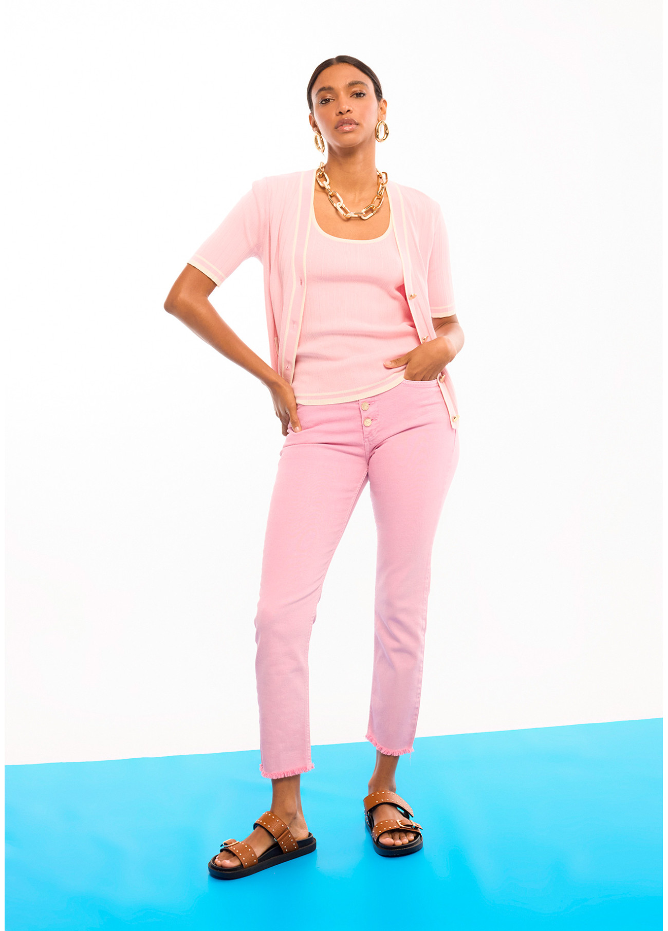 Cardigan à manches courtes avec détails contrastés