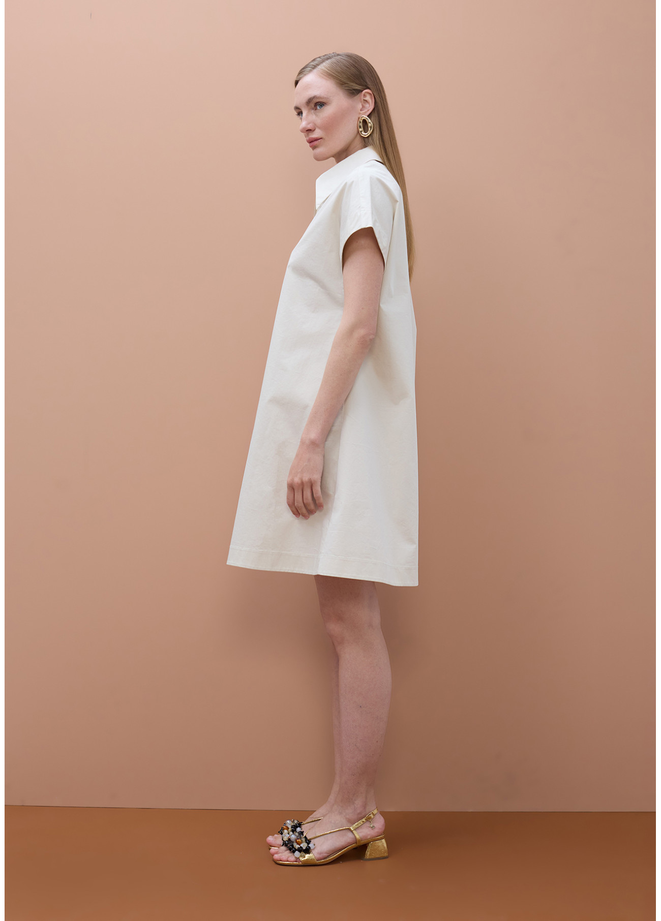 Robe chemise courte avec manches courtes et fermeture éclair élégante à l'avant. Confectionnée en tissu léger de haute qualité, parfaite pour un look décontracté et frais. Design ample offrant confort tout au long de la journée.