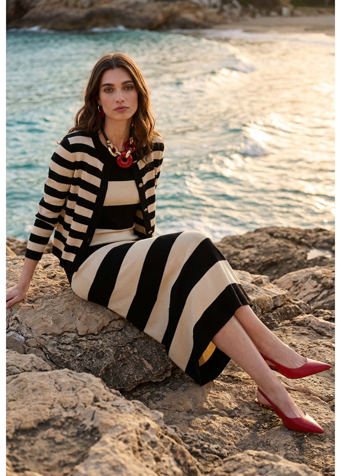 Robe en Tricot à Rayures Bicolores