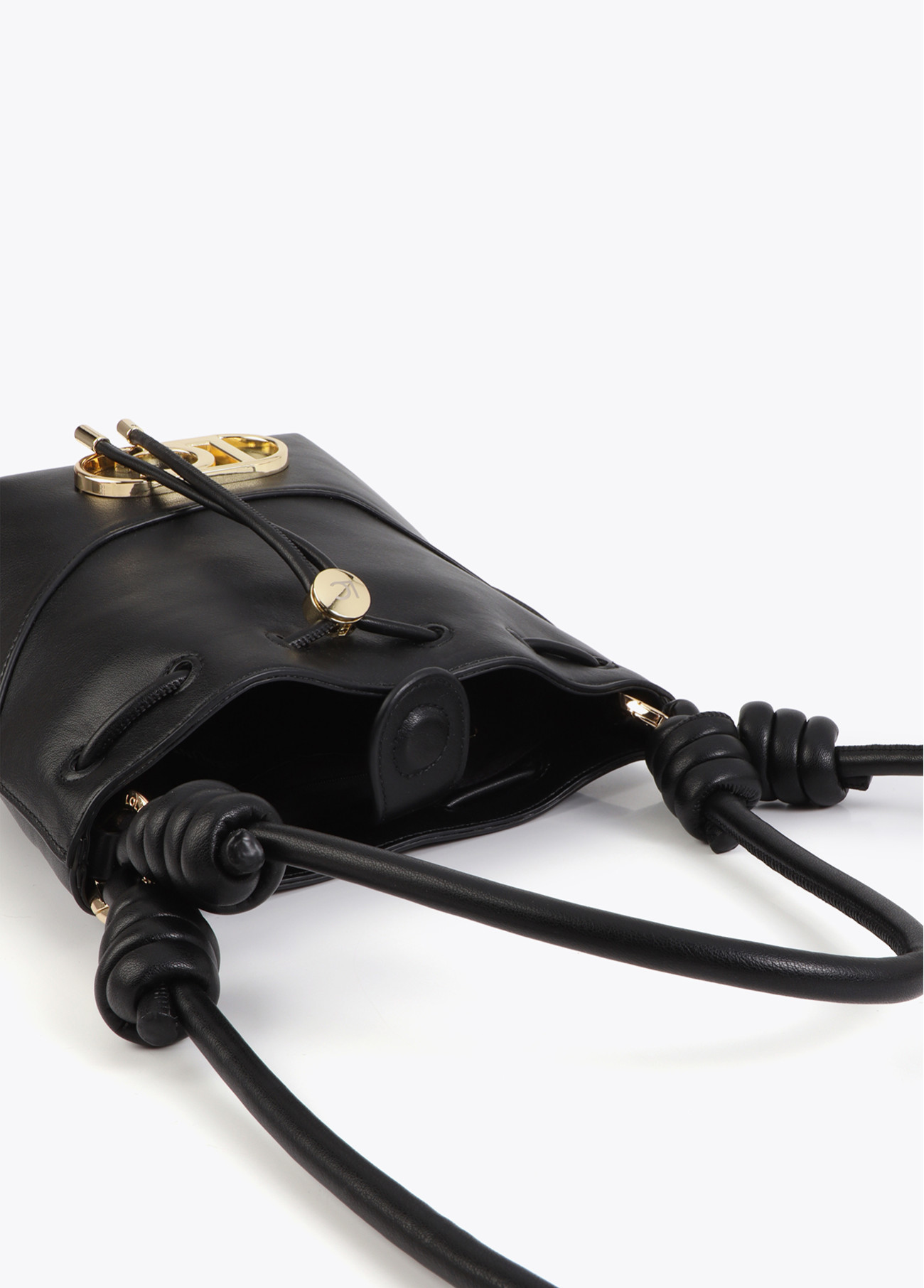 Sac moderne avec anse à nœud en noir élégant. Doté d'une pièce inférieure métallique et d'une fermeture ajustable. Idéal pour toute occasion, allie fonctionnalité et style avec un design compact et sophistiqué. Mise en valeur par son logo métallique.