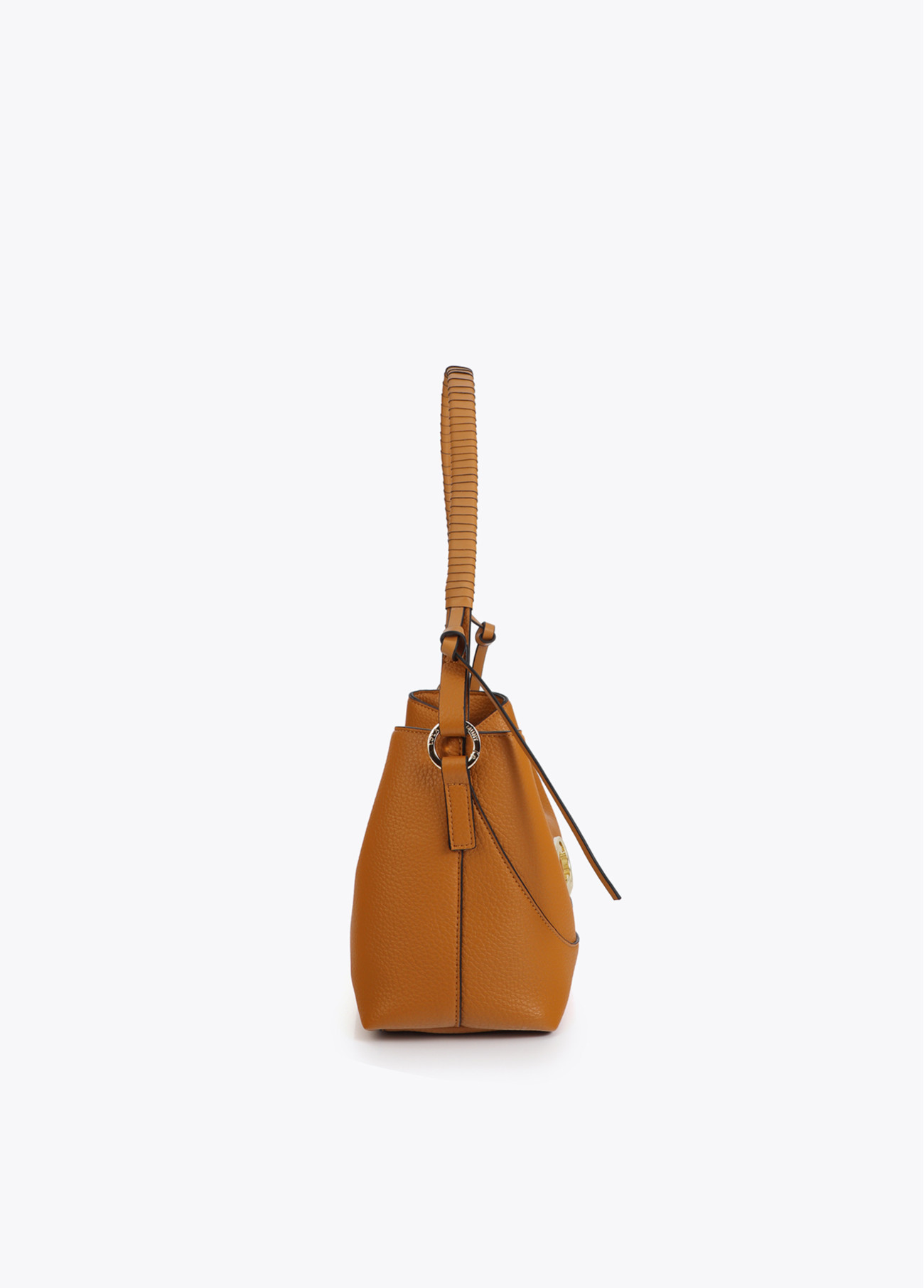 Tracolla sofisticata effetto pelle con manico intrecciato e chiusura a fiocco. Dettaglio lussuoso del logo metallico sul davanti. Interno spazioso con tasche per un'organizzazione ottimale. Perfetta per completare il tuo look quotidiano con stile e funzionalità.