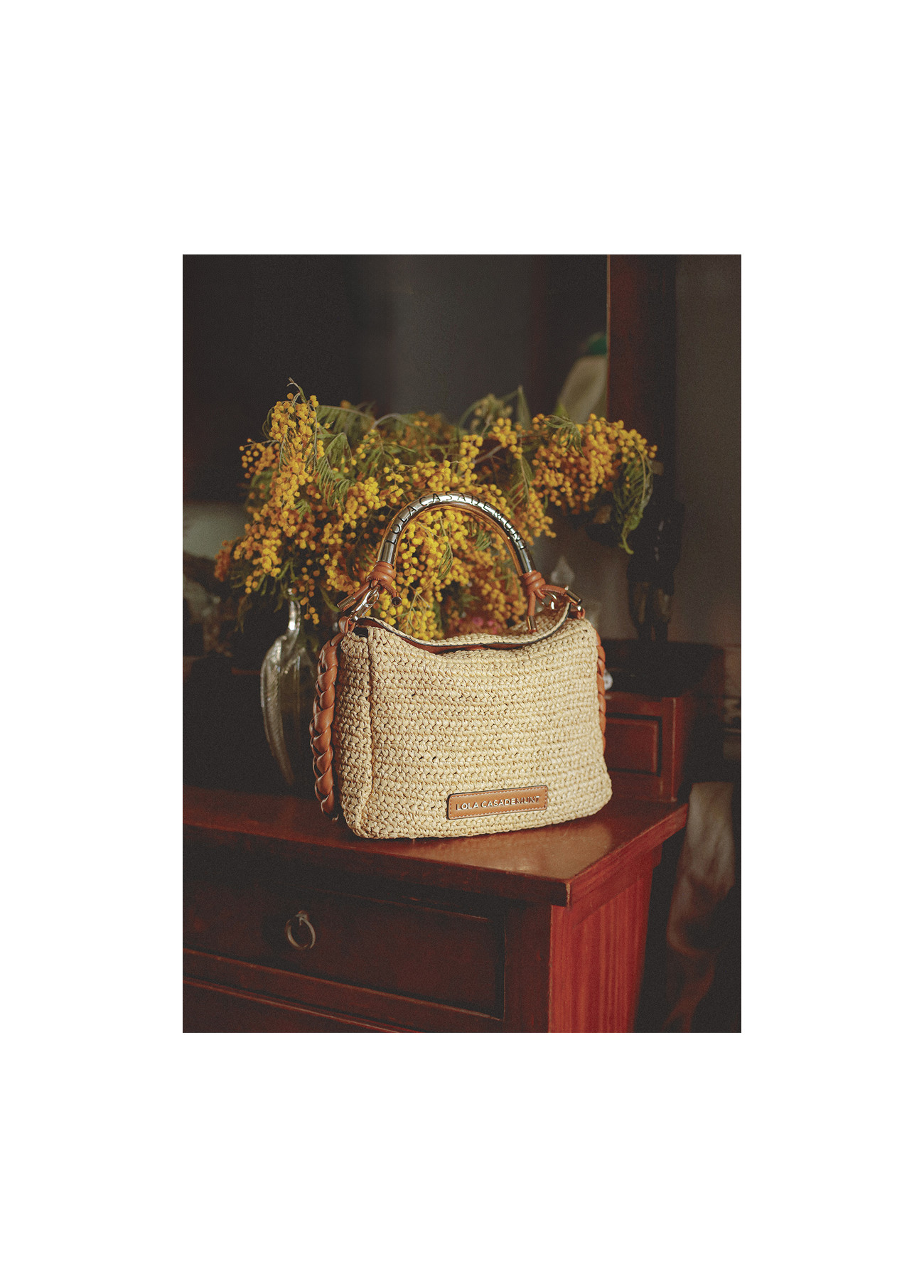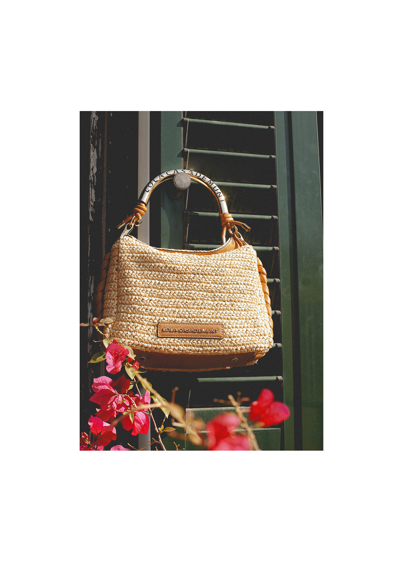 Tracolla combinata effetto rafia con manico traforato logo