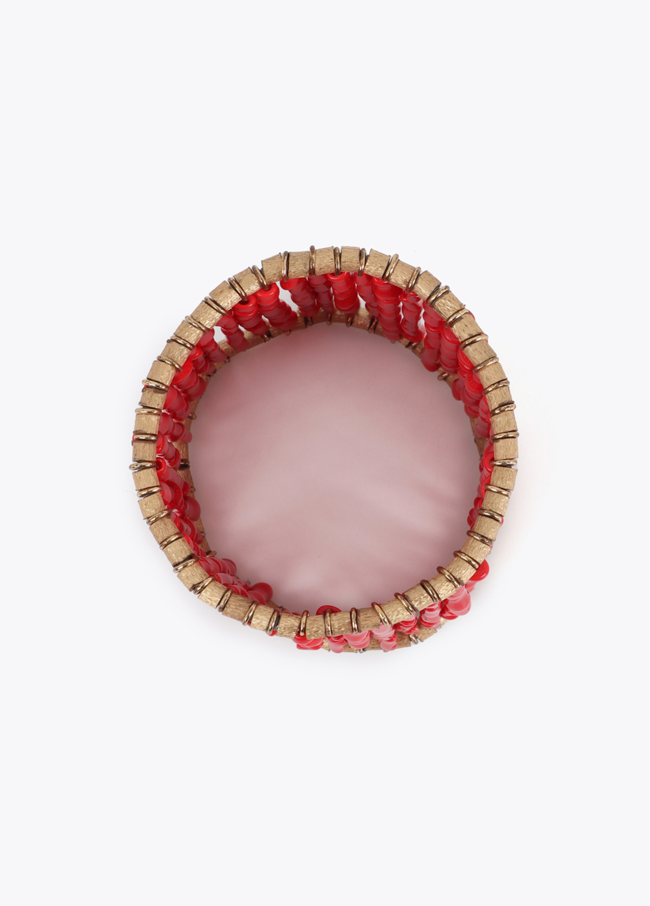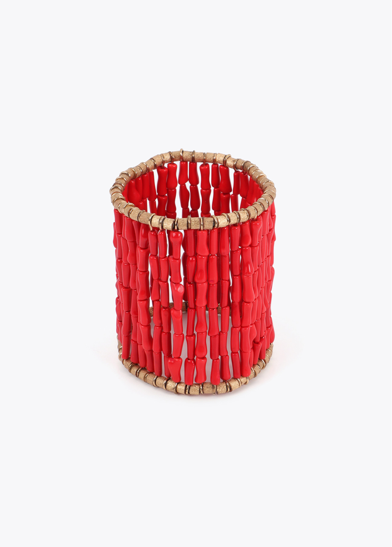 Esalta il tuo stile con questo bracciale elastico con perline di corallo rosso. Design flessibile, facile da indossare, con dettagli dorati. Perfetto per aggiungere un tocco elegante e colorato a qualsiasi outfit.