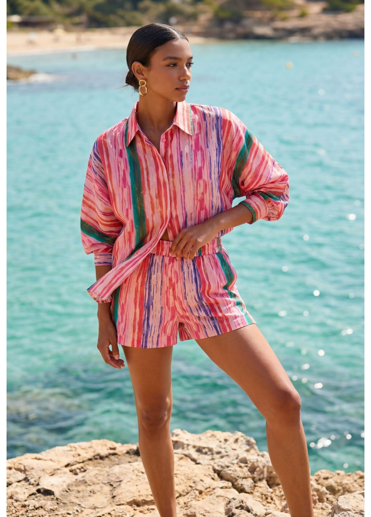Camicia oversize righe multicolore lurex