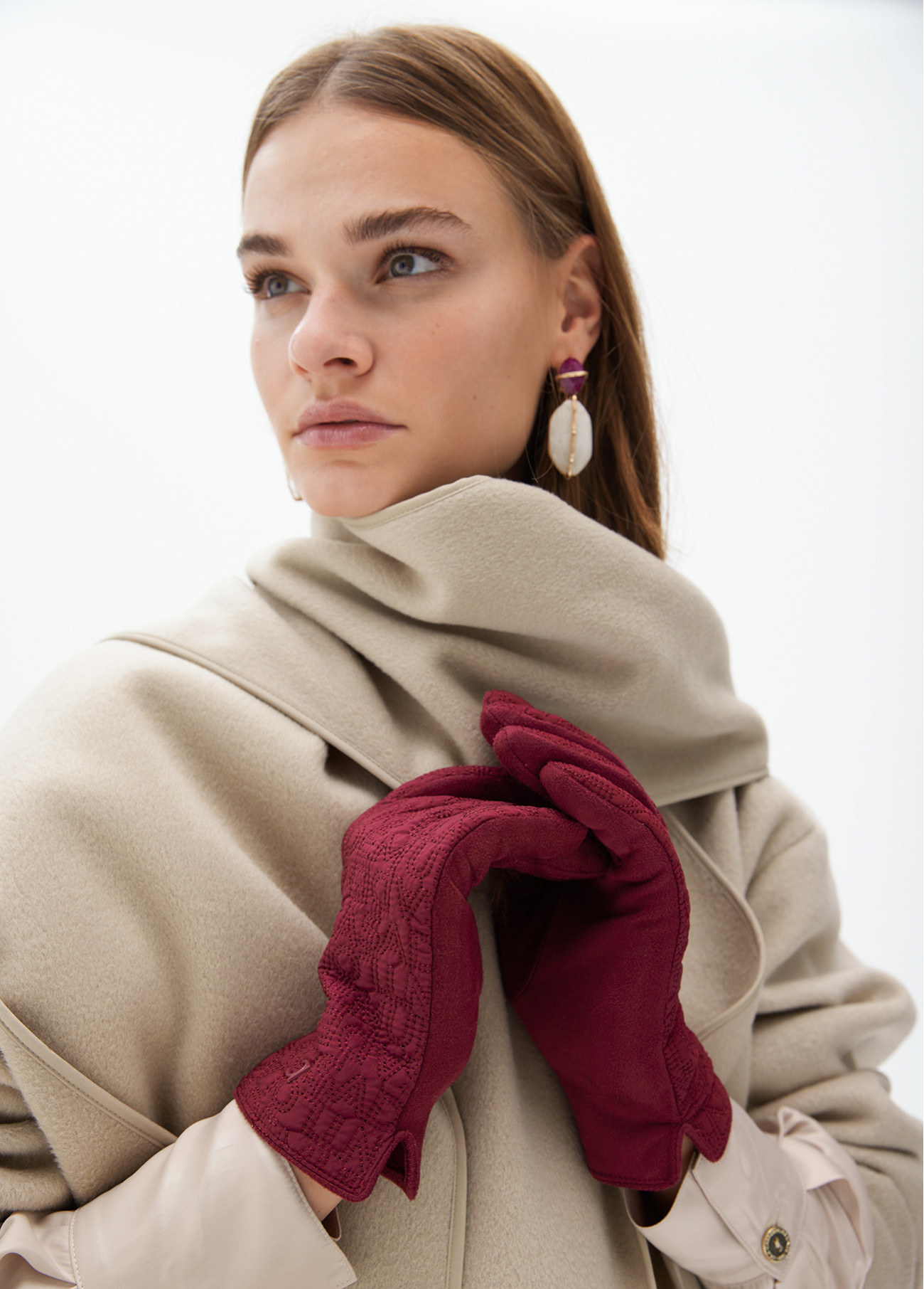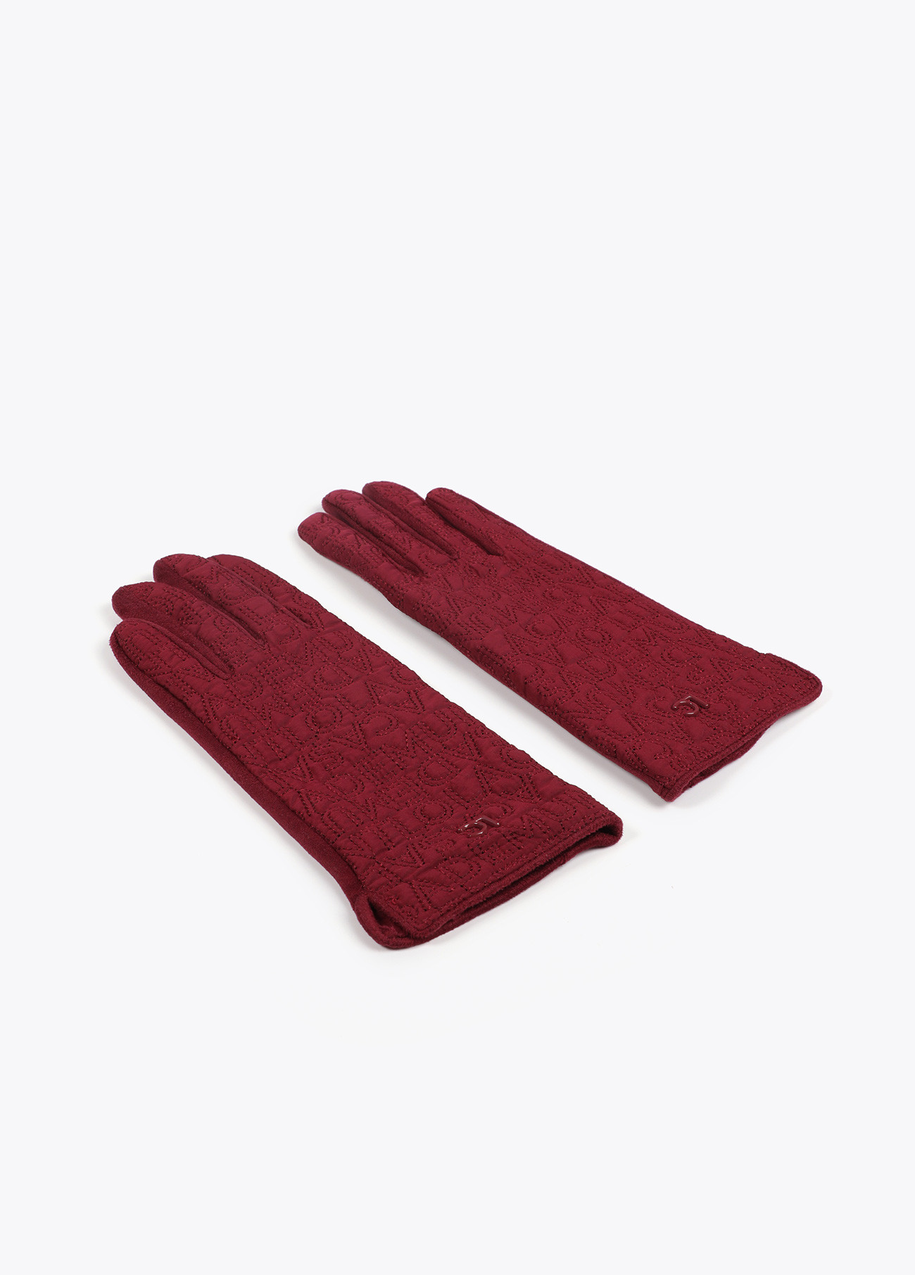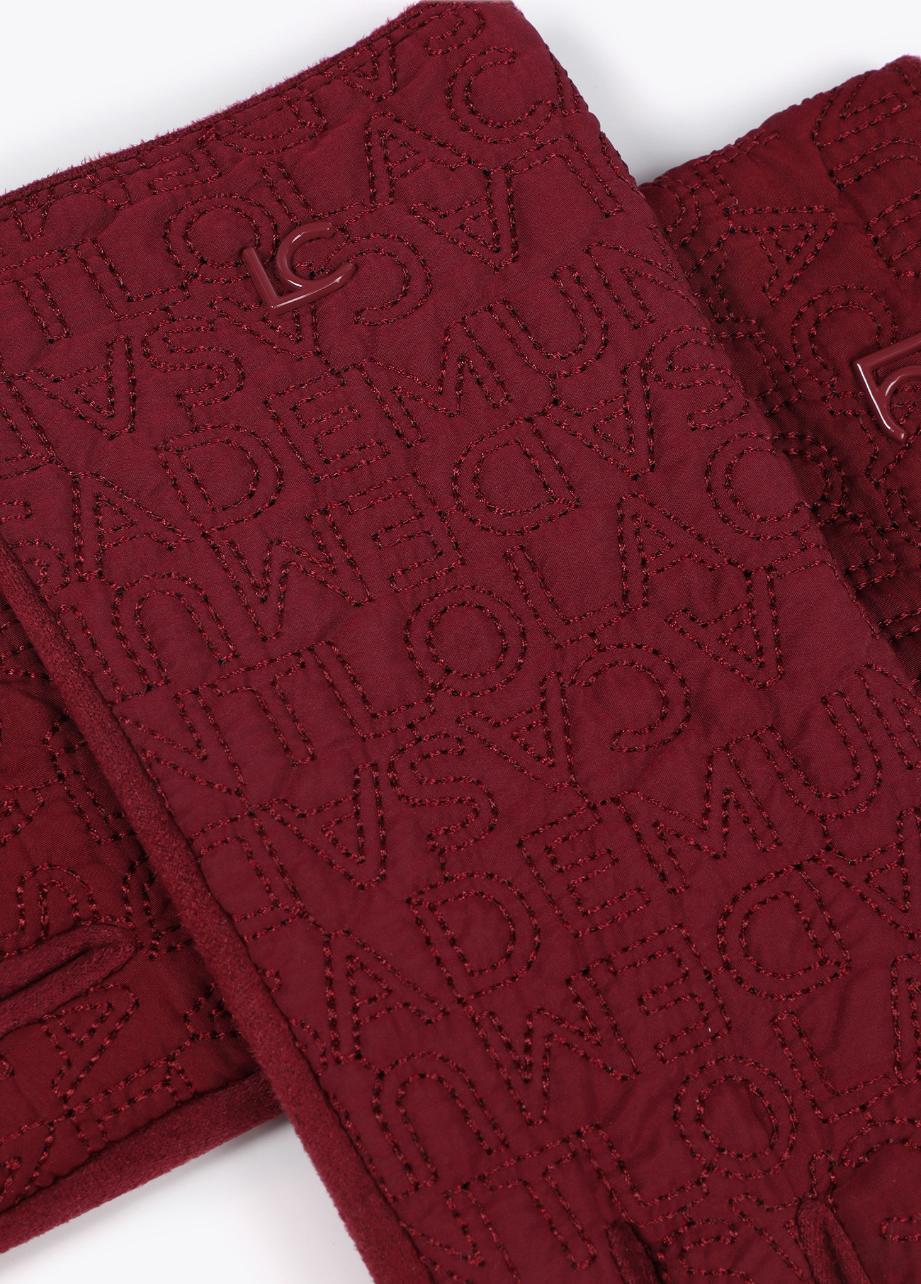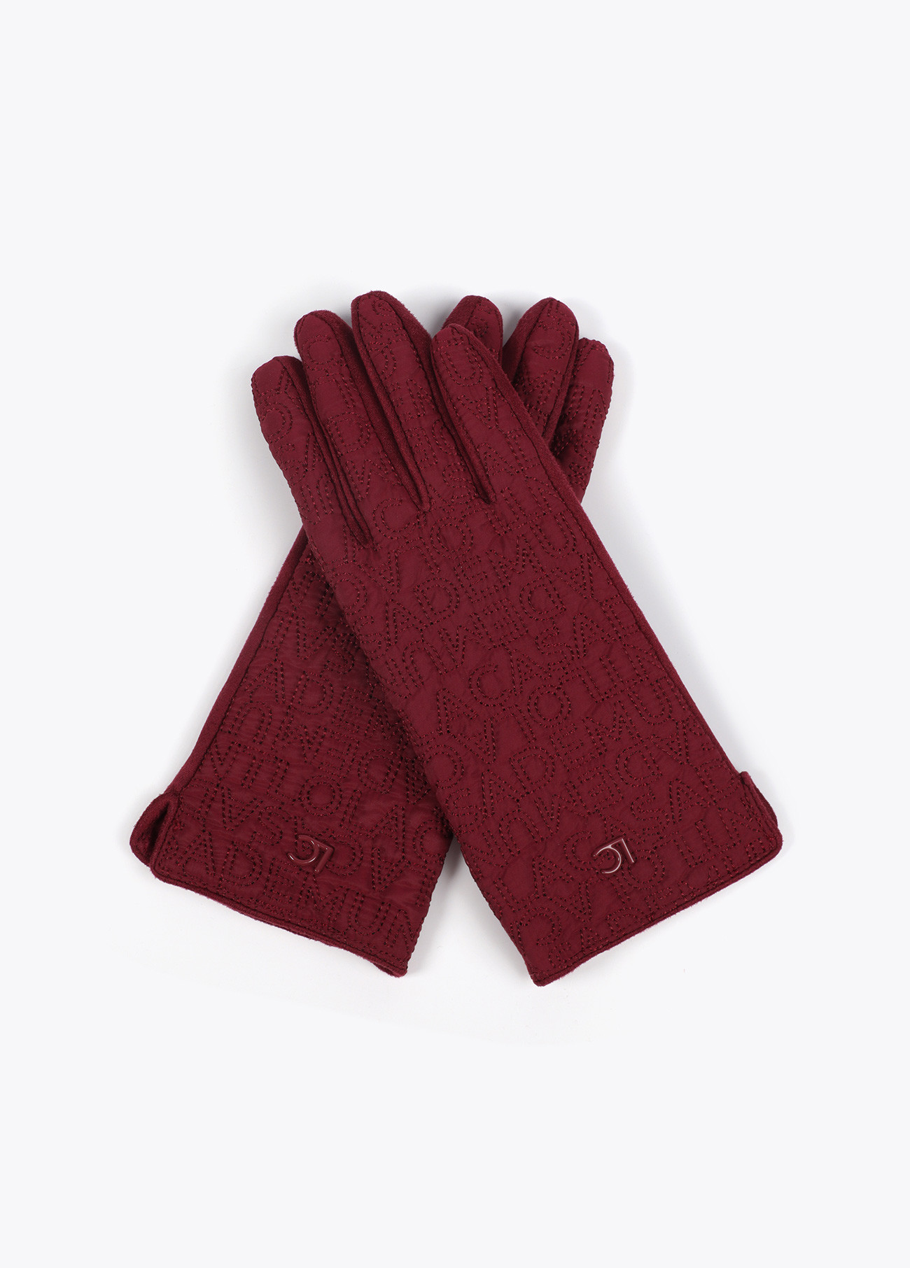 Guanti eleganti bordeaux con logo ricamato. Realizzati in tessuto morbido e caldo per una vestibilità comoda. Logo LC in metallo sul polso.
