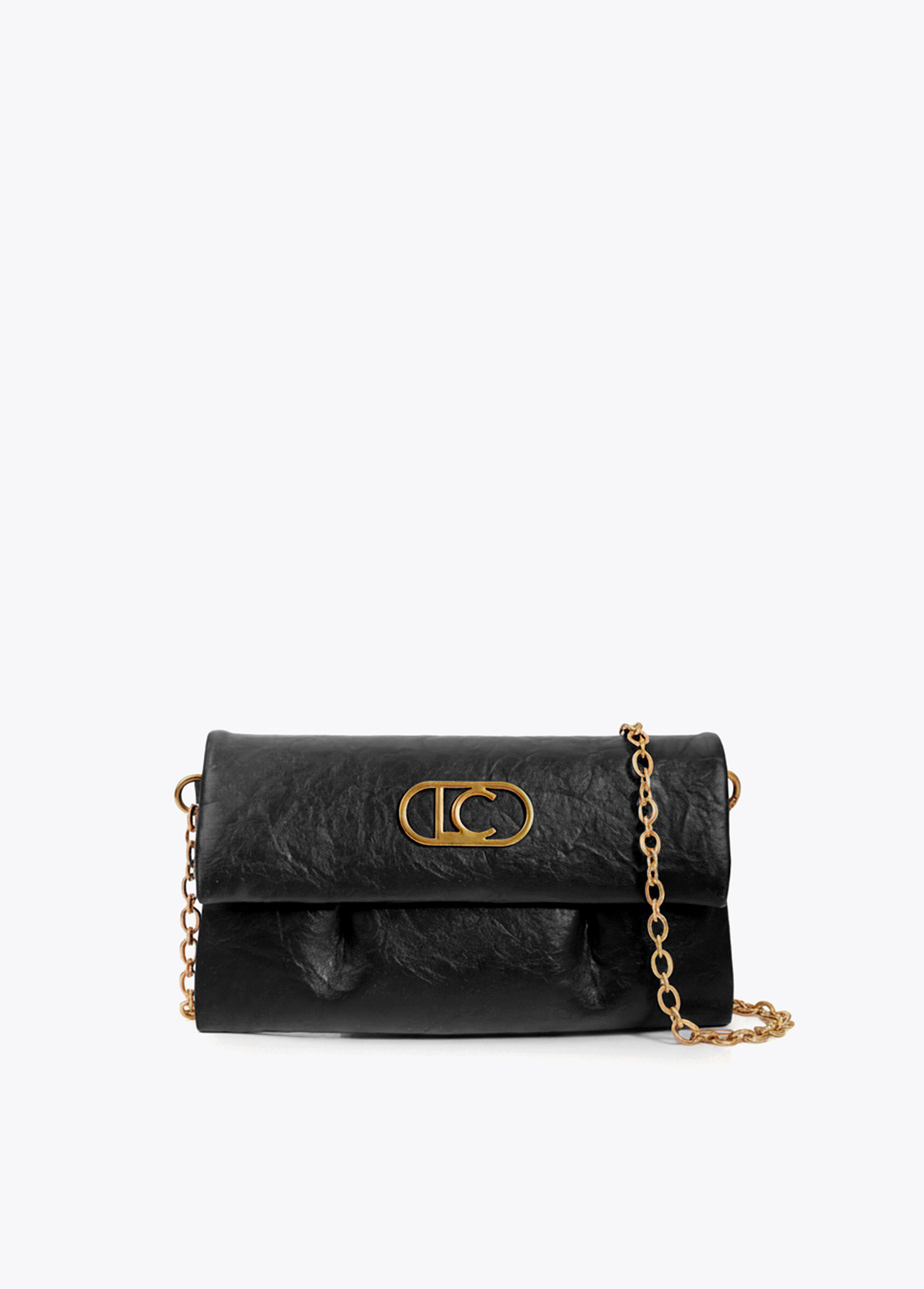 Elegante borsa a tracolla con patta plissettata. Realizzata in materiale di alta qualità con chiusura a catena in color oro. Perfetta per occasioni speciali.