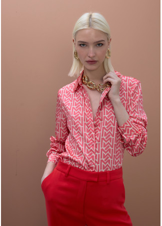 Blazer diritto aderente in vibrante colore corallo. Realizzato in tessuto leggero, presenta revers classici e chiusura con bottone. Tasche frontali con patta e fodera tono su tono per il comfort.