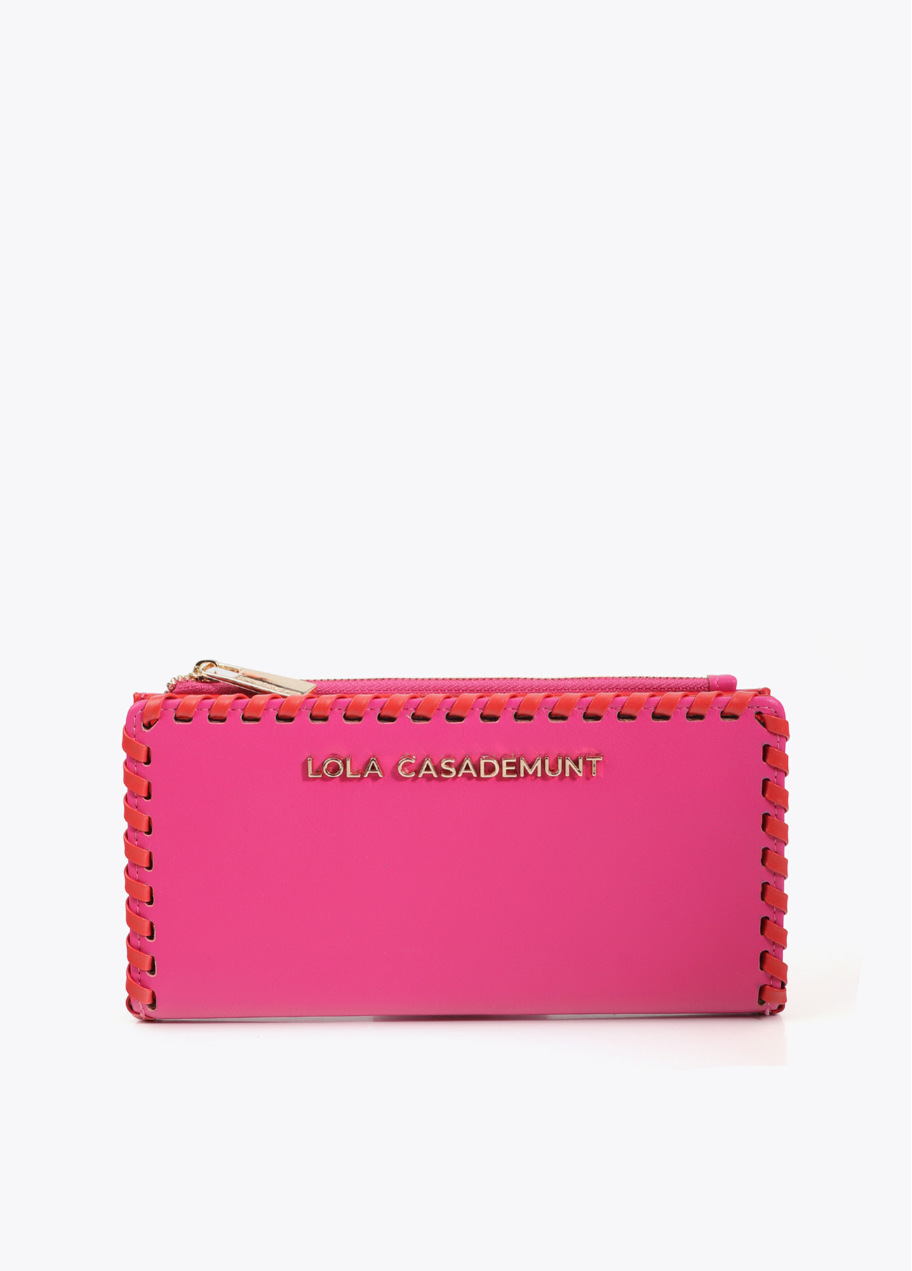 Elegante portafoglio in colori vivaci a contrasto. Design con chiusura a zip e più slot per carte. Ideale per portare l'essenziale con stile. Cuciture a vista che aggiungono un tocco moderno.