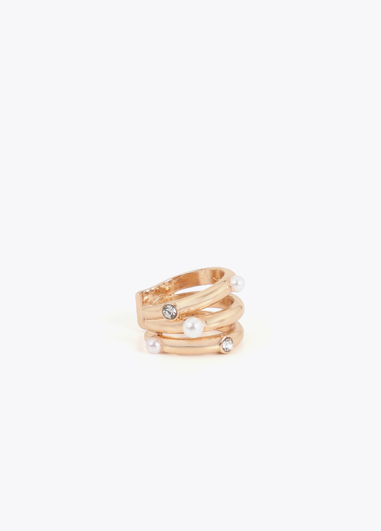 Elegante ear cuff dorato ornato con delicate perle e cristalli scintillanti. Design aperto e regolabile che si adatta perfettamente all'orecchio. La sua finitura dorata aggiunge un tocco sofisticato a qualsiasi outfit. Ideale per occasioni speciali e look serali.
