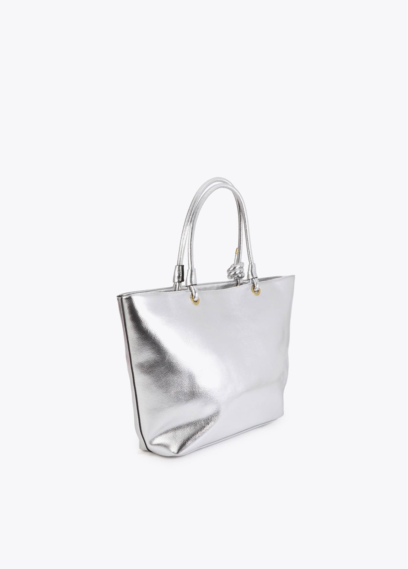 Questo shopper dorato destrutturato combina stile e funzionalità. Dettaglio di logo ovale a rilievo e manici robusti per un trasporto confortevole. Perfetto per aggiungere un tocco di glamour ai tuoi outfit quotidiani.