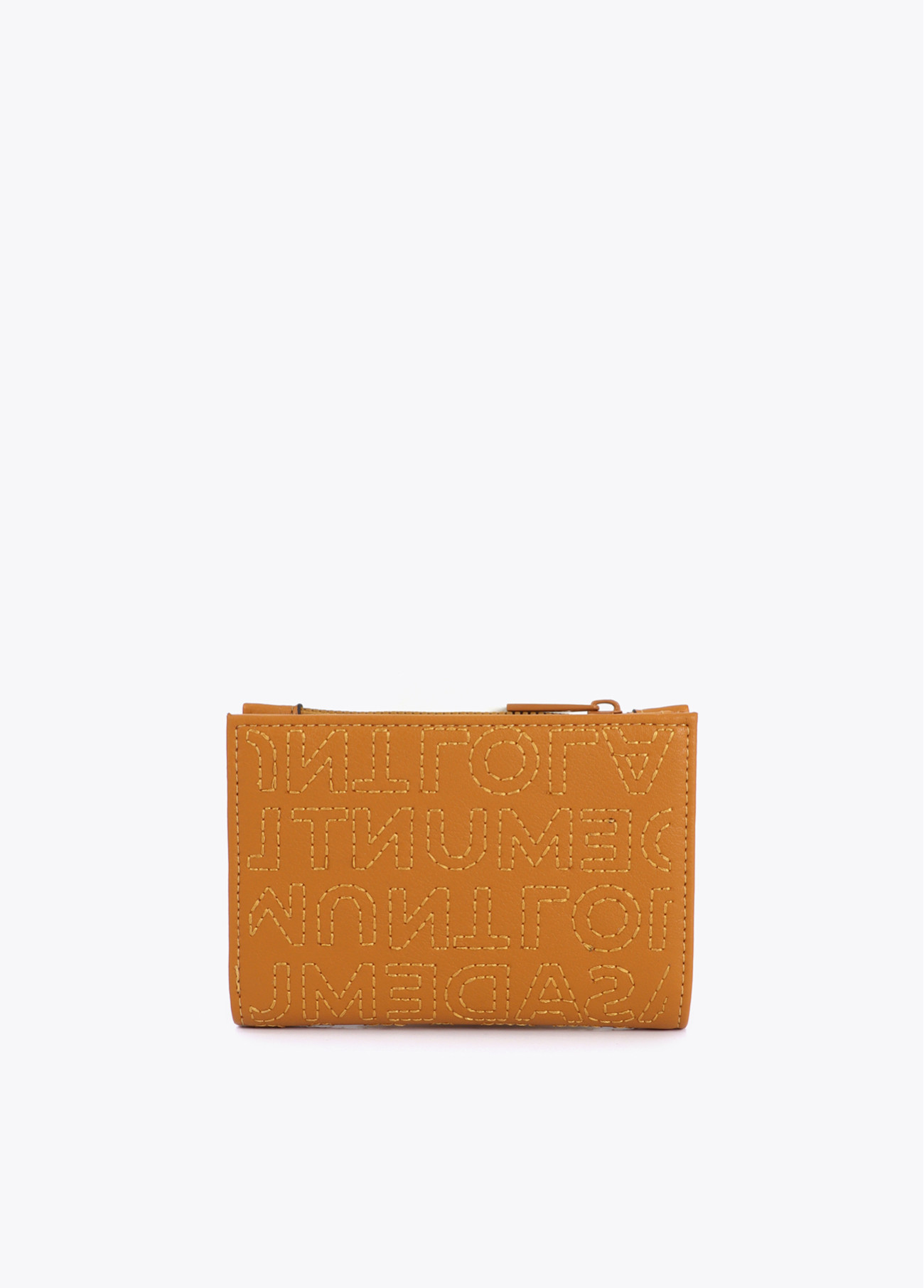 Portafoglio compatto realizzato in materiale sintetico con cuciture dettagliate e logo inciso. Interno con più scomparti per carte e banconote. Chiusura con cerniera sicura ed elegante, ideale per mantenere gli essenziali organizzati con stile.