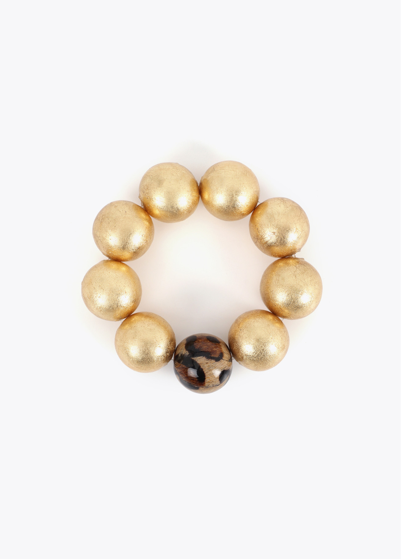 Bracciale elastico con perline maxi in oro opaco e un originale dettaglio di design animal print. Perfetto per aggiungere un tocco audace a qualsiasi outfit. Ideale per migliorare look casual con uno stile unico e moderno.