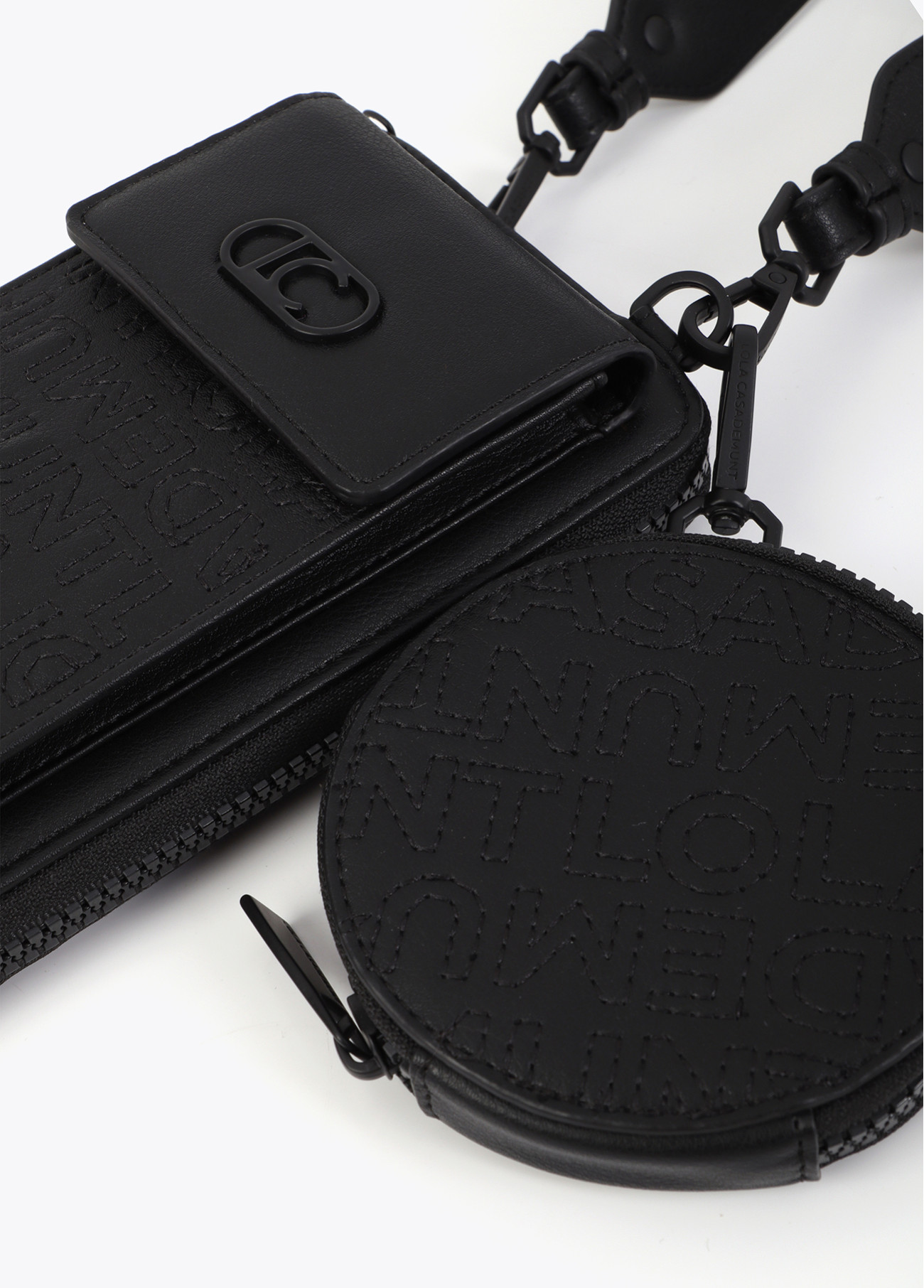 Elegante pochette per cellulare con logo cucito. Include tracolla regolabile e comparto extra. Design moderno in materiale resistente, ideale per tenere i tuoi effetti personali al sicuro e organizzati.