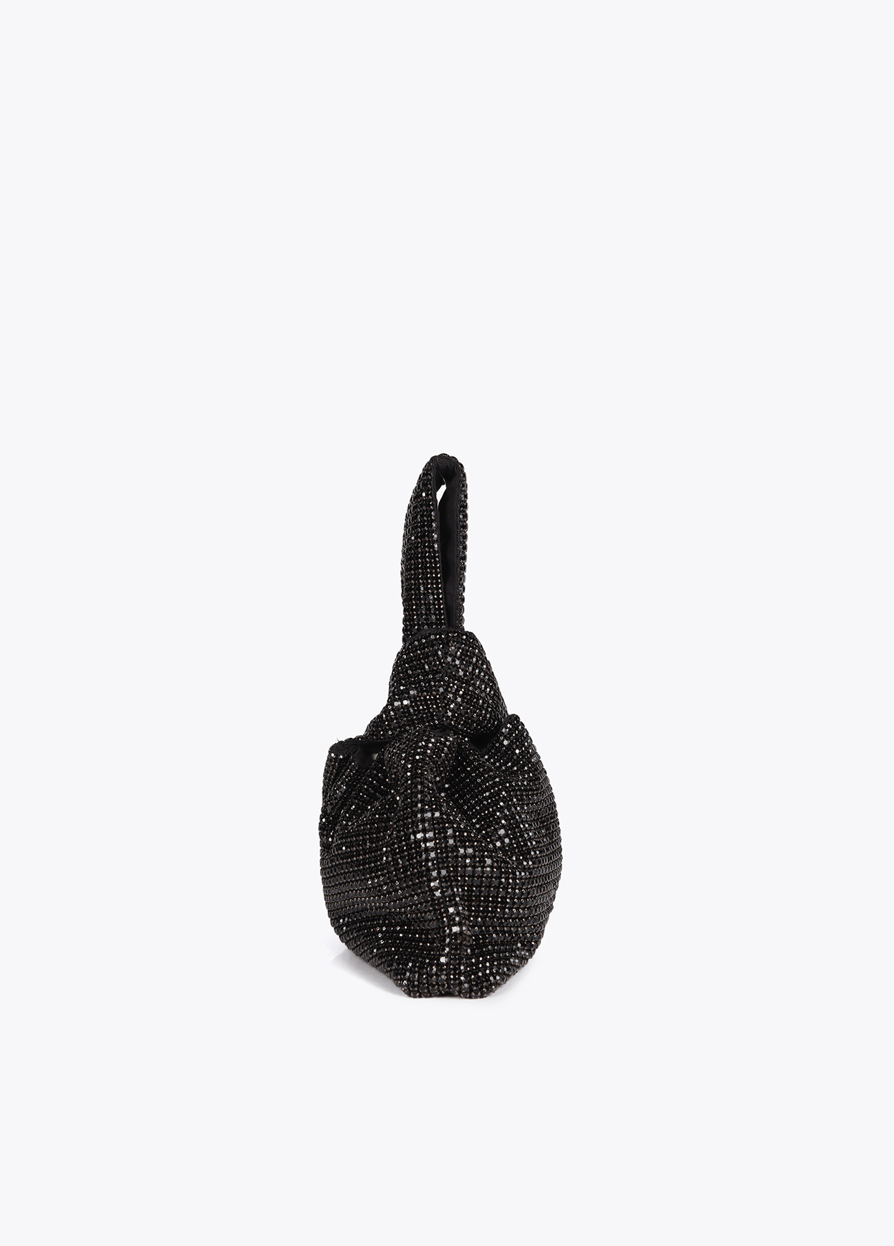 Borsetta esclusiva in rete con strass brillante e logo metallico. Design compatto con tracolla a mano, chiusura sicura e fodera interna morbida. Perfetta per aggiungere un tocco chic ai tuoi look serali.