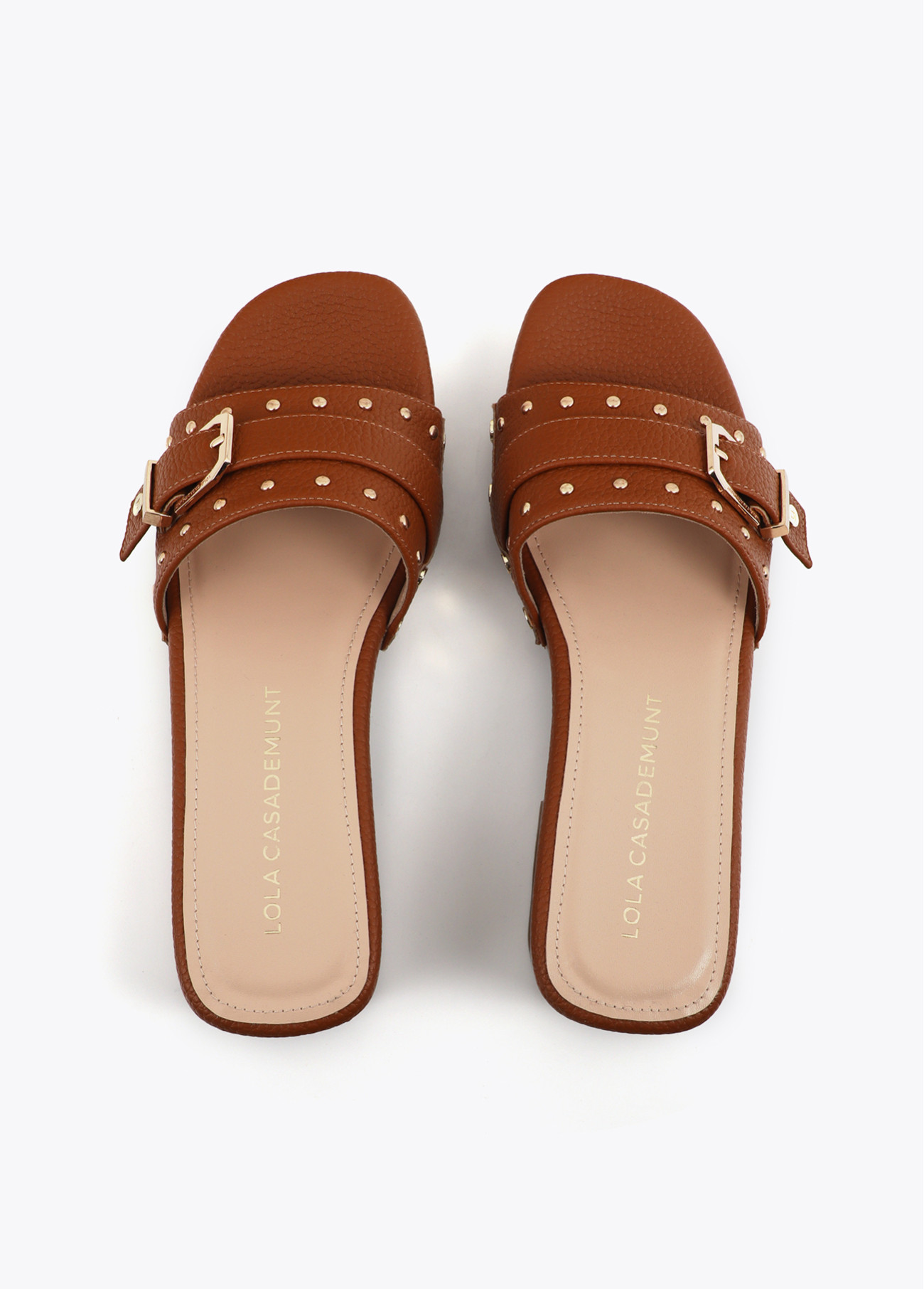Zoccolo con piattaforma e dettagli metallici dorati. Design elegante e confortevole con fibbia regolabile. Realizzato con materiali di alta qualità per un uso quotidiano.