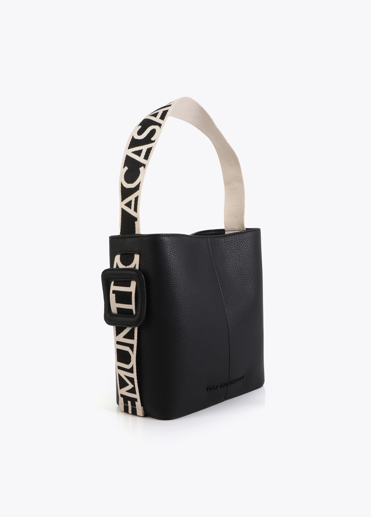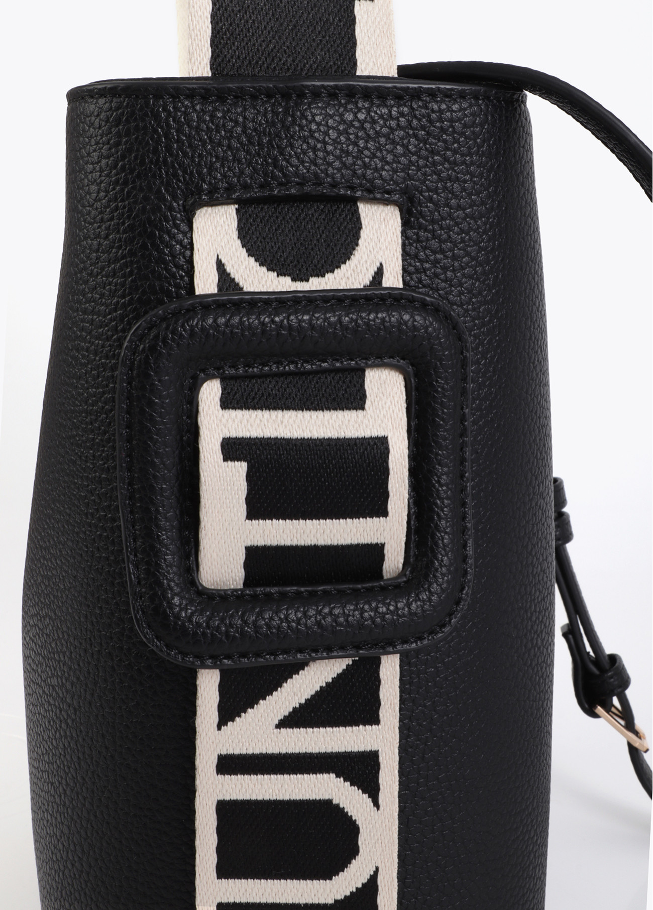 Bolsa shopper elegante com alça de nylon em contraste. Acabamento texturizado preto e interior espaçoso. Ideal para uso diário. Possui fecho de zíper e logotipo em relevo.